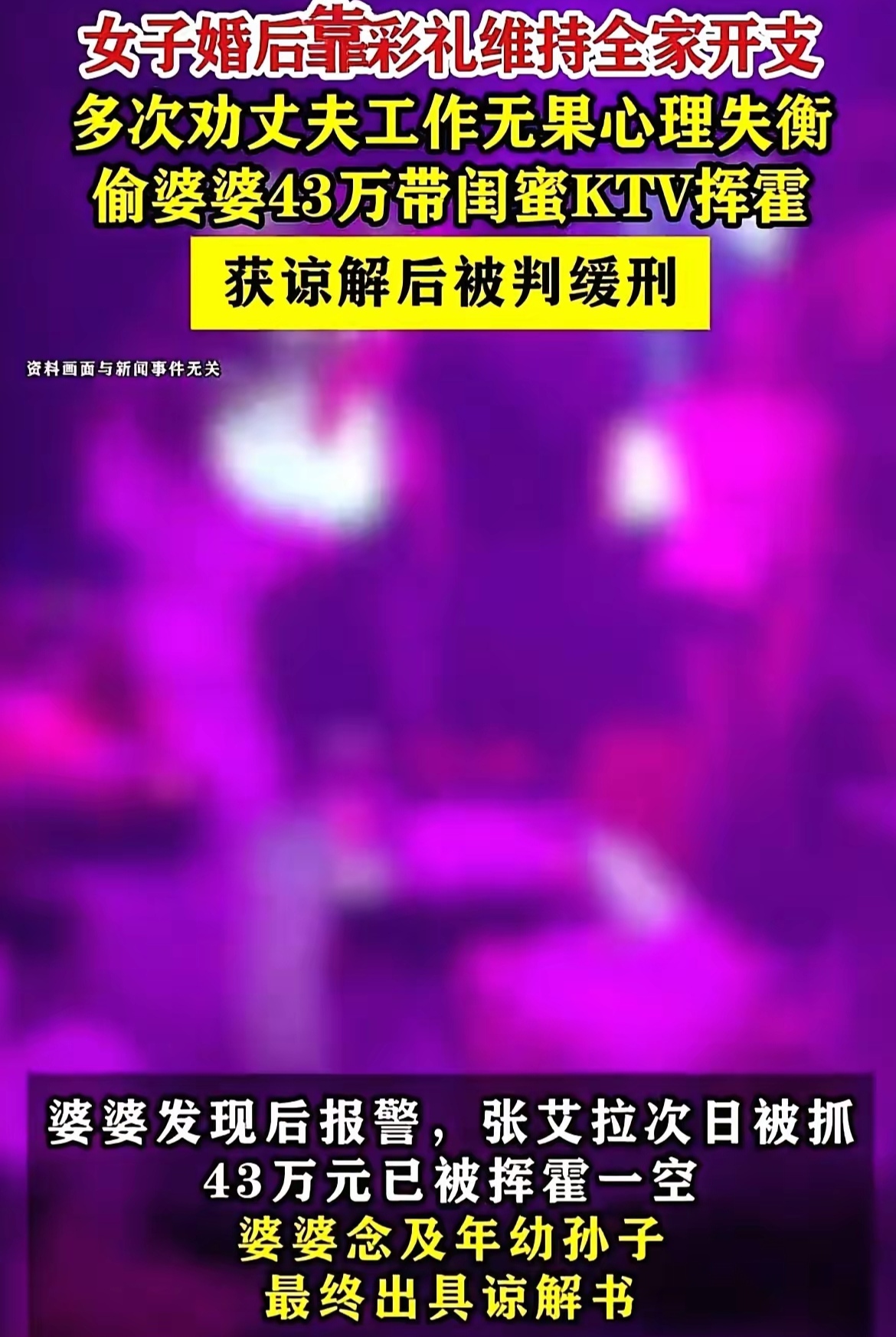 这起案件最终以婆婆的谅解和法院的缓刑判决收场。检察官表示,判决考虑了被告人的认罪态度和家庭成员的谅解。婆婆一开始报了警,可是在儿子以及亲家反复请求之下,考虑到年幼的孙子,最后便选择了原谅。40天挥霍43万元,这个数字触目惊心。但比数字更令人惊愕的,是那些隐匿于案件背后的家庭矛盾还有社会的问题。