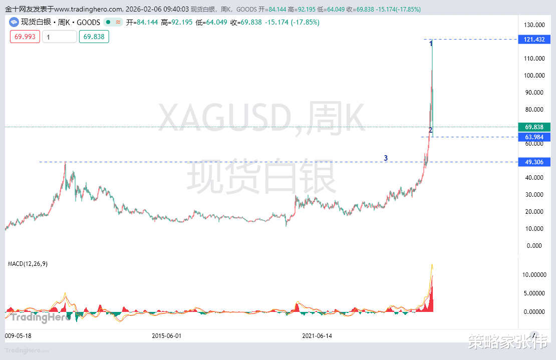 如果把工业用途以及其它方面需求放大,价格可能不太高,市场就在于无限放大某个被戳破点,白银从2025年12月份到2026年1月份价格从49附近一路上涨直接到达121.6附近,这种上涨说明什么?投机性所谓,如果价格一直维持在高位,未来工业都买不起原料了,怎么生成,这本身就存在问题的投机性走势。