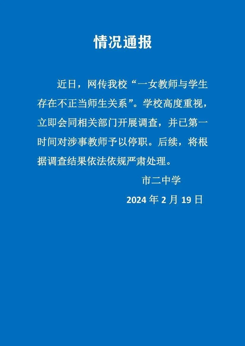 上海市第二中学在得知相关消息后,没有选择回避或缓慢处理,而是立即行动。学校方面表示,他们已经与相关部门合作,开展了全面的调查。在调查期间,涉事的女教师已被停职,以确保调查的公正性和彻底性。