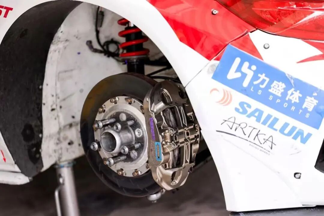 与民用车追求舒适、耐用不同,赛用刹车的核心使命是对抗极端制动产生的巨大热量。赛用刹车通常采用多活塞卡钳、面积更大的通风盘体及高温材料,一切设计只为在持续高强度驾驶中,减少热衰减,提供极致稳定、精准的制动力。