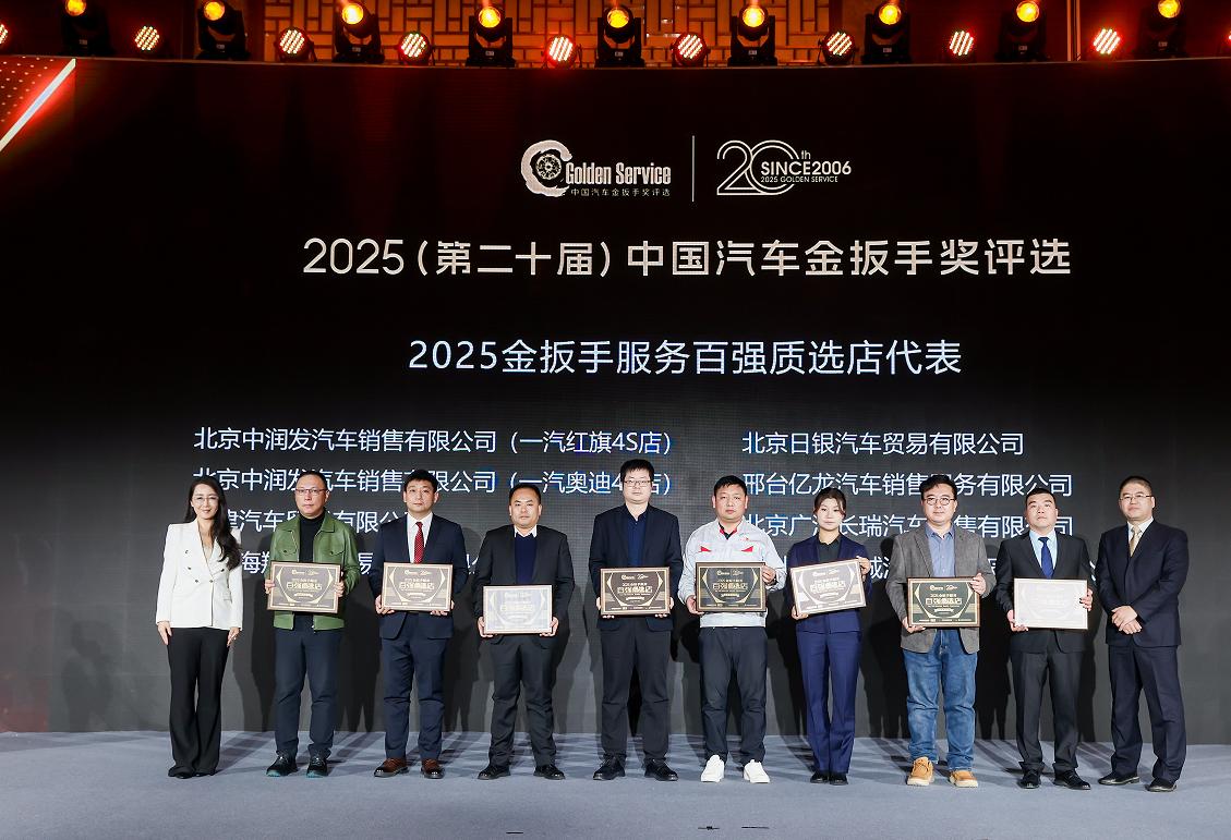 为了树立品牌服务标杆榜样,助力产业服务水平整体提升,主办方同期举办了2025金扳手服务百强质选店评选活动,该评选依据金扳手GES-150服务评价标准和《放心汽修认证》团体标准,对候选经销商进行专业评审,最终共有8个品牌的全国100家优秀经销商获得“2025金扳手服务百强质选店”荣誉称号。