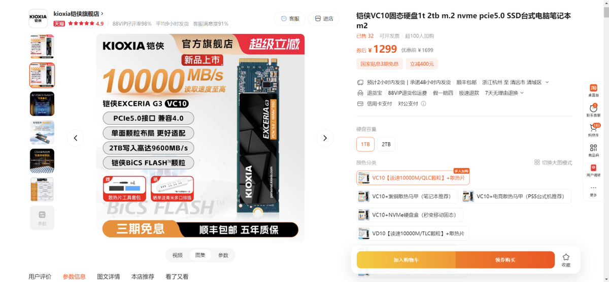 因为大多数人的场景,没那么极限。更多还是办公、娱乐、打游戏、修图,偶尔剪一点视频,希望系统和软件反应更快一点,文件传输更利索一点,加载时间短一点,但又不想为了最顶那一档性能付出太高成本。那这种时候,VC10 反而会更顺手。它是一块性能已经很够用,同时价格思路也更容易让人接受的主力盘。你装进去之后,能明显感觉到电脑更快了,但又不会有那种“是不是为了几个参数多花太多钱”的负担。