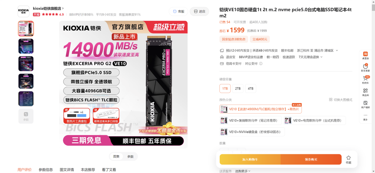 也就是在这种时候,我开始认真看铠侠新出的两块PCIe5.0 SSD:VE10 和 VC10。