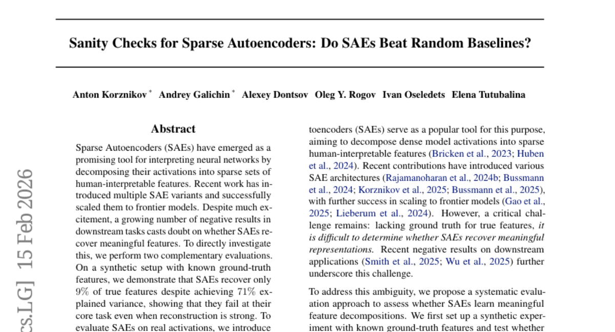 说到底,这项研究就像是给AI解释性领域敲响了一记警钟。长期以来,研究者们对稀疏自编码器这个"AI读心术"工具寄予厚望,认为它能帮助我们真正理解神经网络的内在思维过程。然而,当研究团队用最基本的"常识检验"——与随机方法对比——来测试这个工具时,却发现它可能只是在进行高级的"统计魔术",而不是真正的特征发现。
