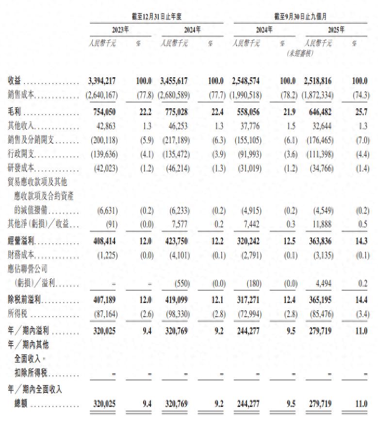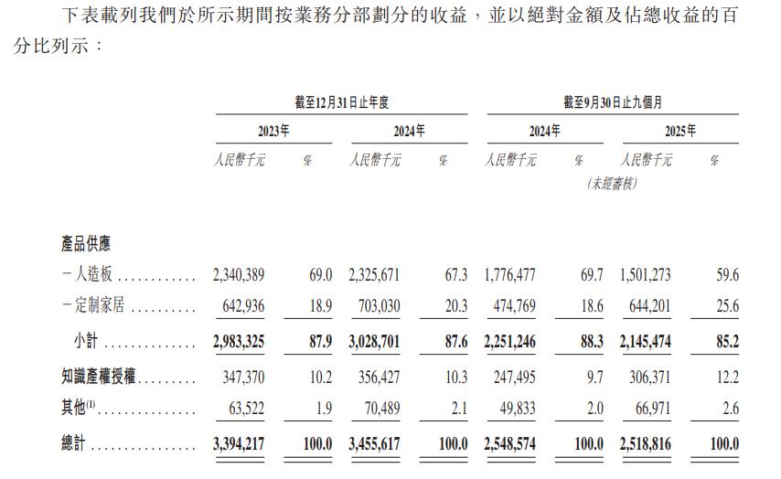 报告期内(2023年至2025年三季度),莫干山家居的收入分别为33.94亿元、34.56亿元、25.19亿元。