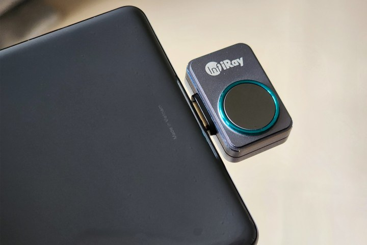 InfiRay公司声称P2Pro是全球最小的可拆卸热成像相机配件。根据官方数据,这款相机重量仅9克(0.32盎司),尽管我的秤显示为11克,但实际上不会让人感到沉重。这款相机通过USB-C端口连接,专门用于与安卓手机或平板电脑配合使用,而另一款带有Lightning端口的机型也适用于苹果手机。