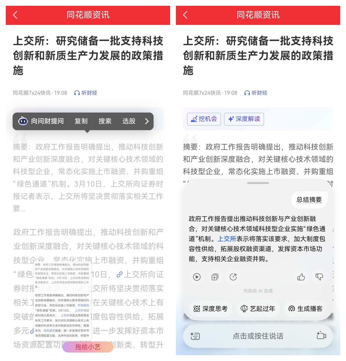 长按拖拽“投喂”给小艺,也让我在日常生活里爱不释手。面对鸿蒙版同花顺里密密麻麻的行业研报,我习惯直接把长文拖拽给小艺,它能迅速帮我提炼核心观点,生成一份简洁明了的简报,决策效率提升了不少。