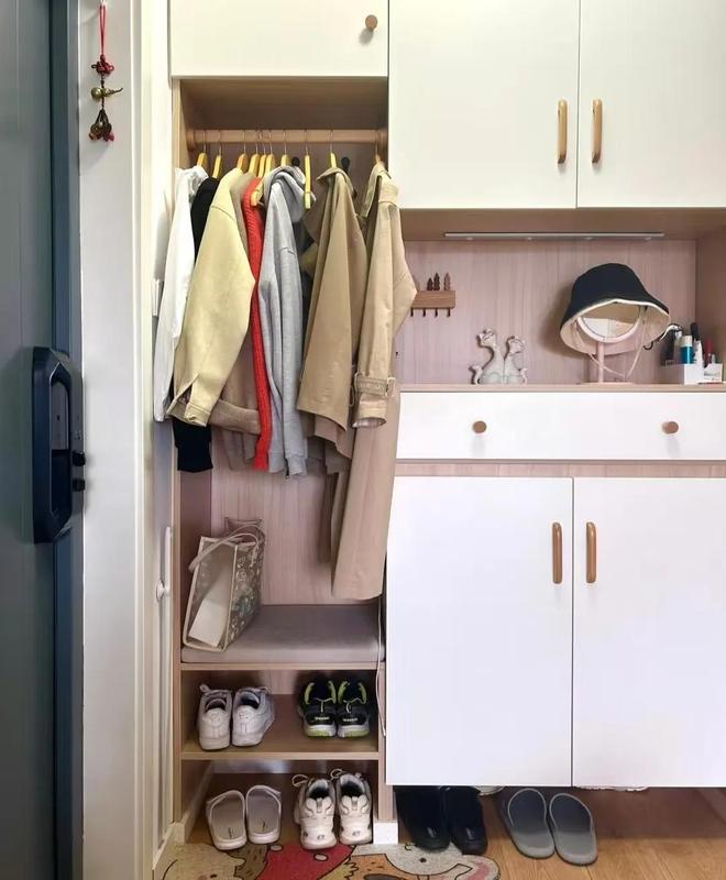 所以说,玄关柜就尽量将空间全部用于放鞋子,不要考虑什么放衣服的空间了(除非玄关空间特别大)。