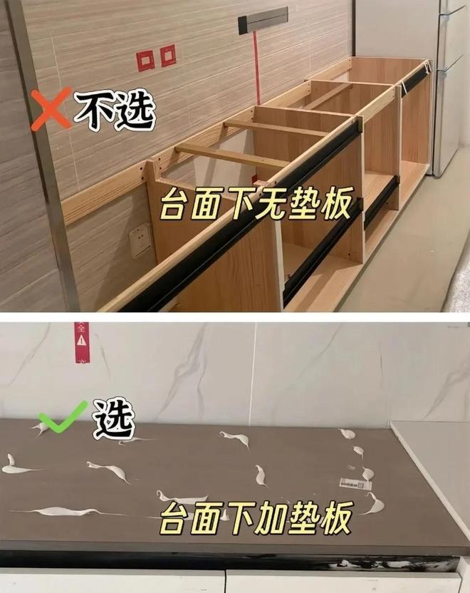 但是,在做橱柜时,因为不知道台面下面还要加衬板的原因,往往被商家给坑到了。