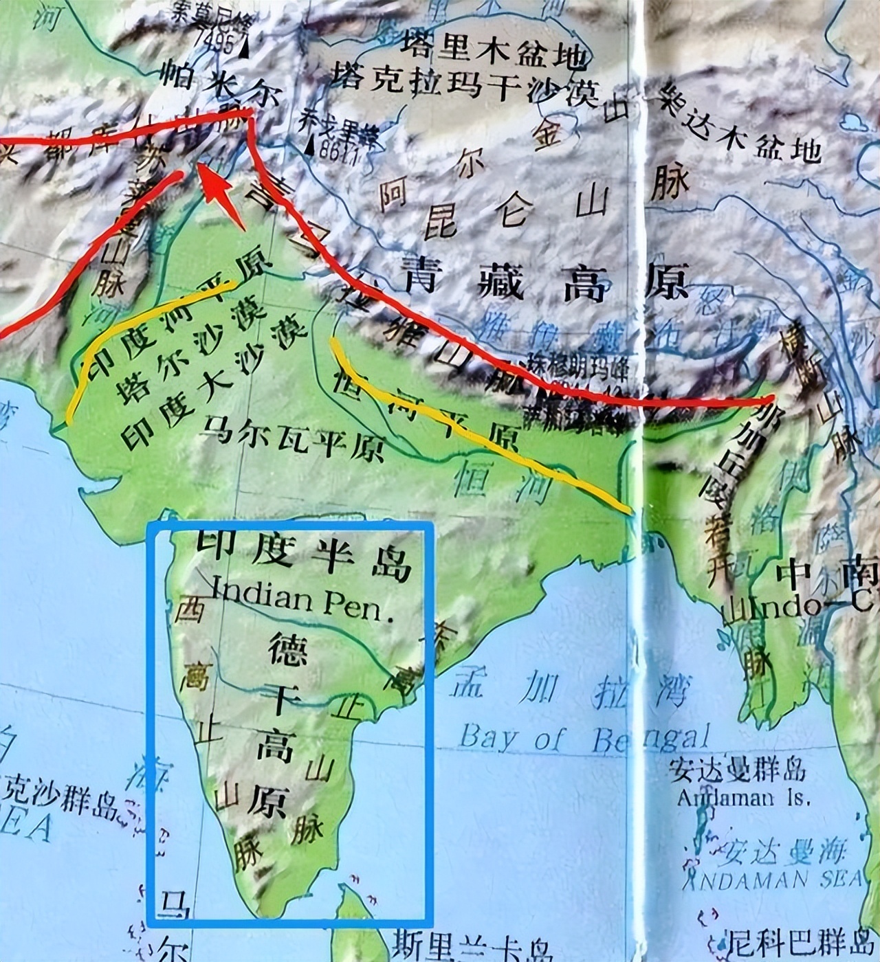 把亚洲的立体地图拉出来看,印度次大陆的北边,矗立着一道平均海拔超过4000米、绵延几千公里的巨型屏障。这道屏障,在冬天把西伯利亚和中亚的刺骨寒风挡在了外面,导致印度次大陆比同纬度其他地区都要温暖。但这可没占到便宜,因为到了夏天,北边的冷空气下不来,印度洋吹来的热气又散不出去,全被这座大山死死捂在了印度次大陆这个“大闷罐”里。