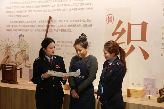 ▲国家税务总局高阳县税务局税务干部走进河北永亮纺织品有限公司,解答涉税疑难问题,提升企业合规经营意识,助力特色纺织产业传承发展。