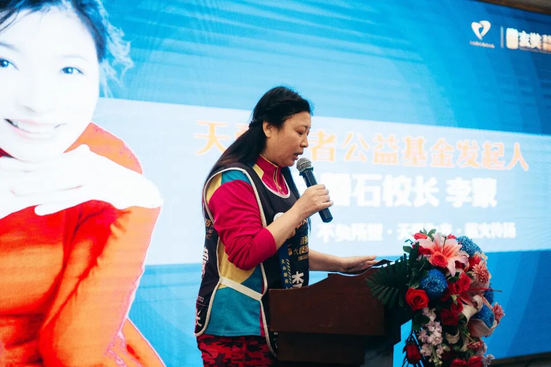 在所有嘉宾的见证下,“天爱行者公益基金”正式启动!“彼此照亮、不负所望,天爱为光、薪火传扬”,十六字誓言响彻全场。