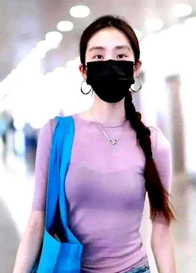 母女两人一起回国,多多身穿一件紫色的上衣,很修身,下身是一条修身的牛仔裤,还是扎着一个油亮的大辫子,头发很好。
