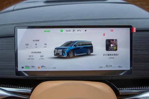 车内还装了AI自适应腰部支撑,无论乘客身材如何,腰部都能自动调整到合适位置,保护腰椎,避免长时间乘坐腰酸背痛。奇妙的是,三排座椅都支持加热和通风,后排朋友也能感受到足够舒适,不像有些MPV第三排空间小、配置弱。二排除了座椅加热、按摩和腿托加热,还有6英寸的扶手屏,乘客可以直接用这个屏幕控制座椅,不用麻烦前排司机,方便又人性化。