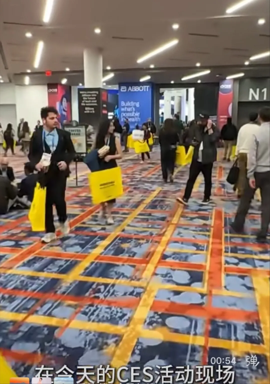 因为,影石另辟蹊径,赞助了CES的伴手礼——环保袋,并且采用视觉冲击效果最为强烈的亮黄色来设计。不知道的参会观众,会以为是奢侈品大牌赞助的包装袋,现场的观众排队领取,大量的环保袋元素出现在媒体报道的画面之中。