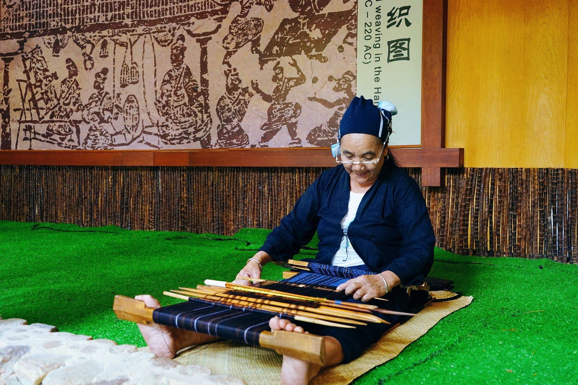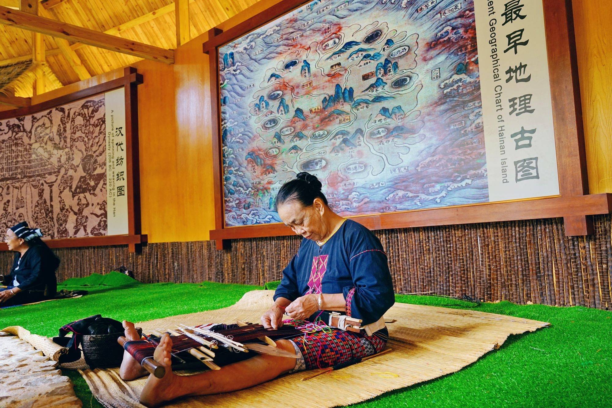 在这里可以看到黎族妇女亲自演示黎锦的编织过程,黎族人心灵手巧,几乎成年妇女都会手工,她们熟练地操作着丝线,手指翻飞,将缤纷的颜色织进黎锦,也织进了漫长的时光里。