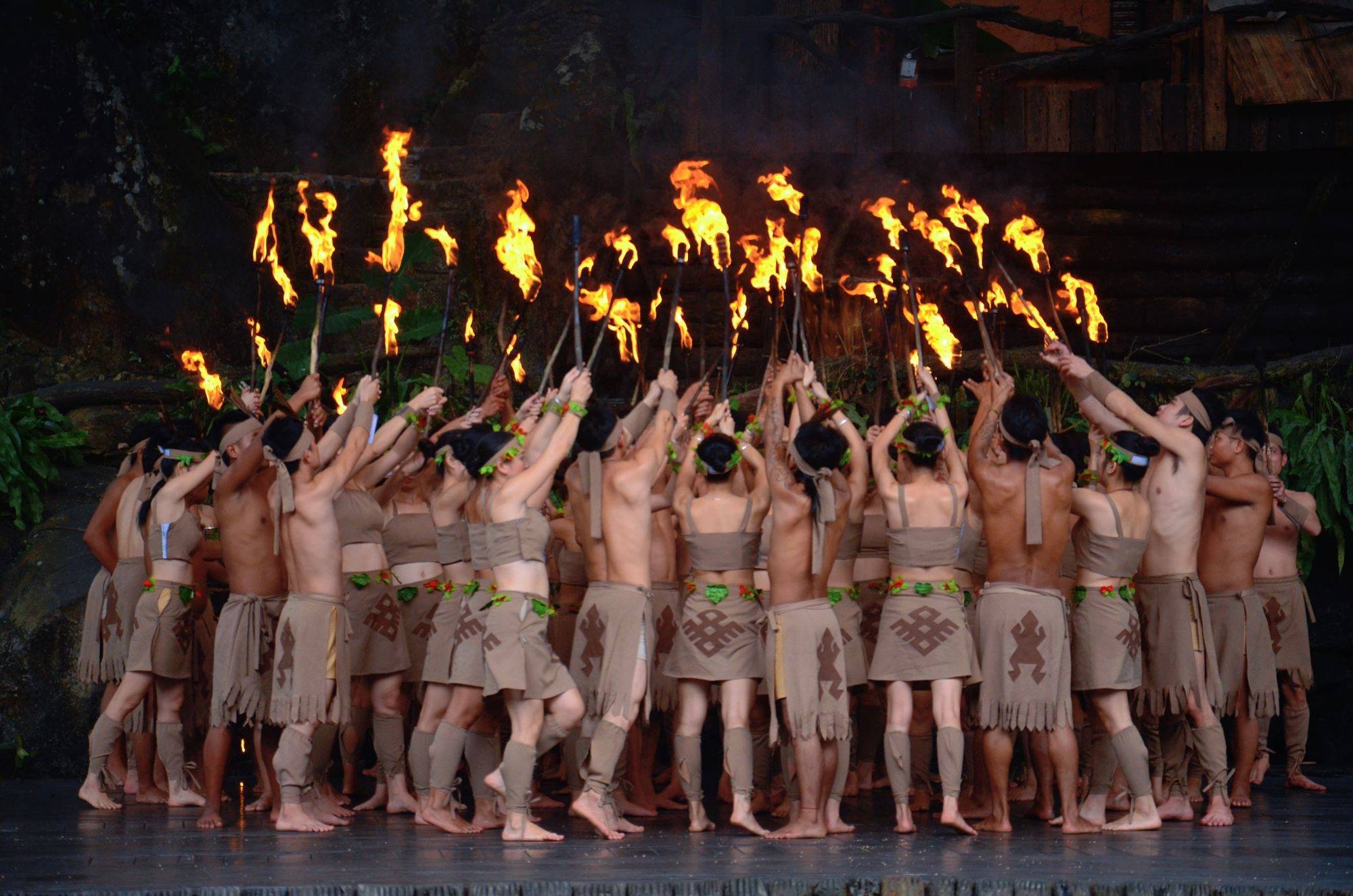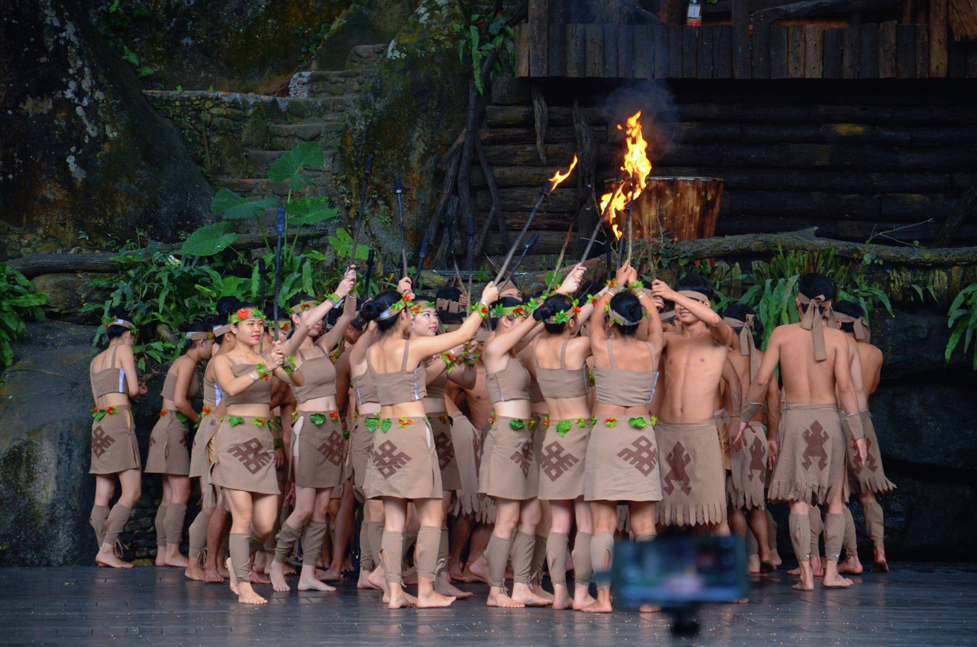 来景区一定不能错过的就是大型民族歌舞剧《槟榔·古韵》,每天上演四场,露天舞台被茂盛的热带树木围绕,原生态的环境让观众仿佛身处古老村落中,沉浸感十足。