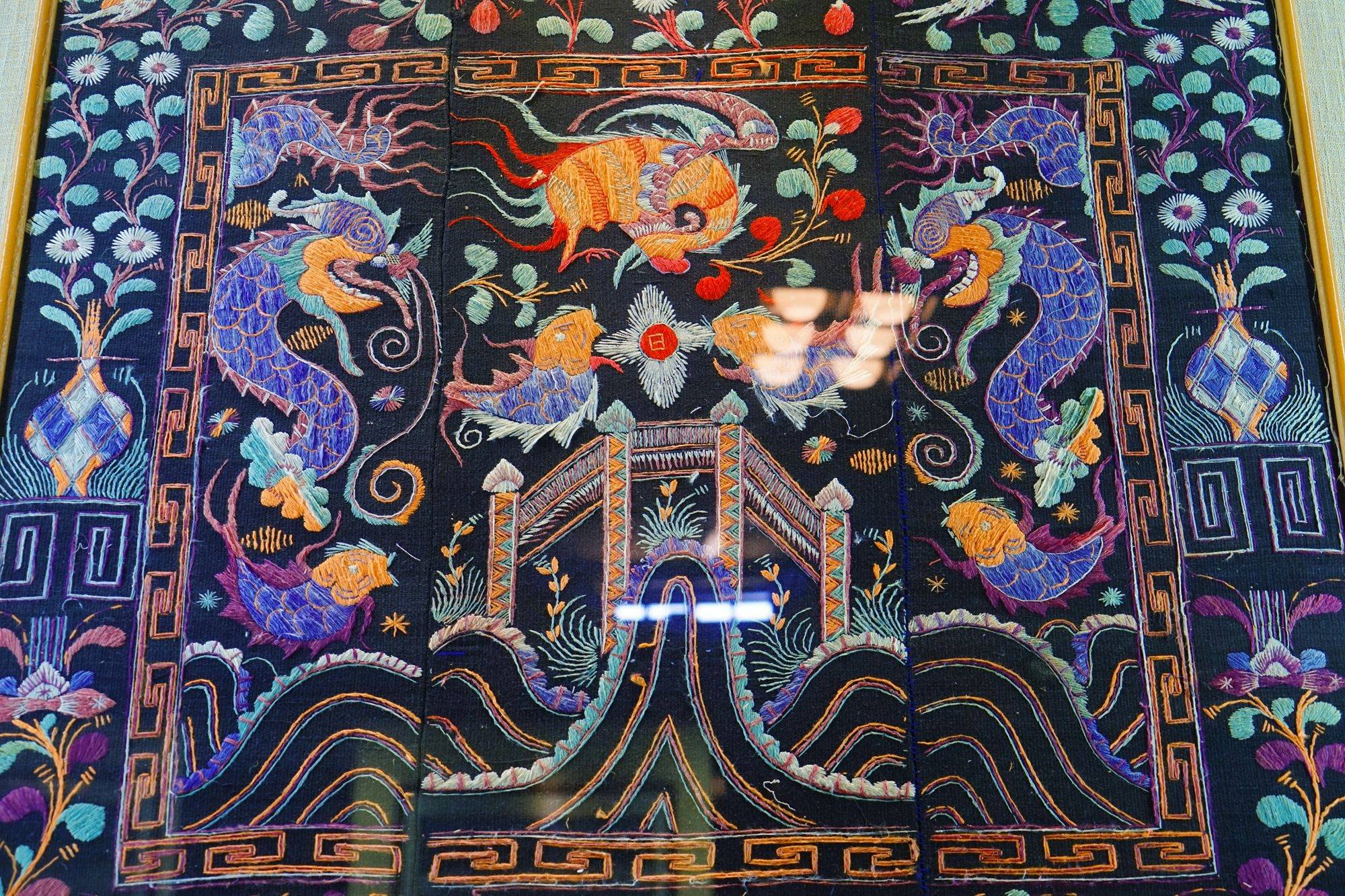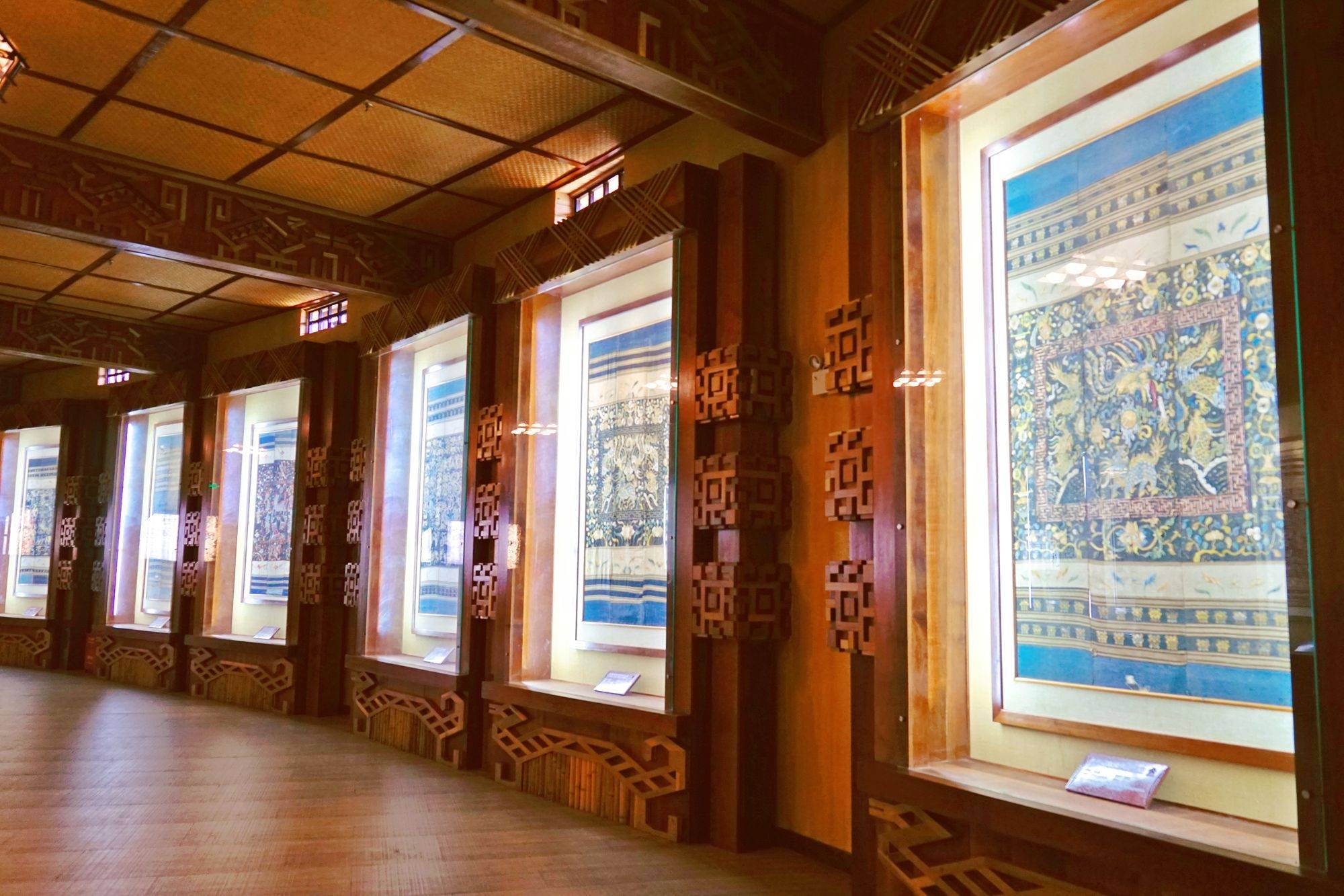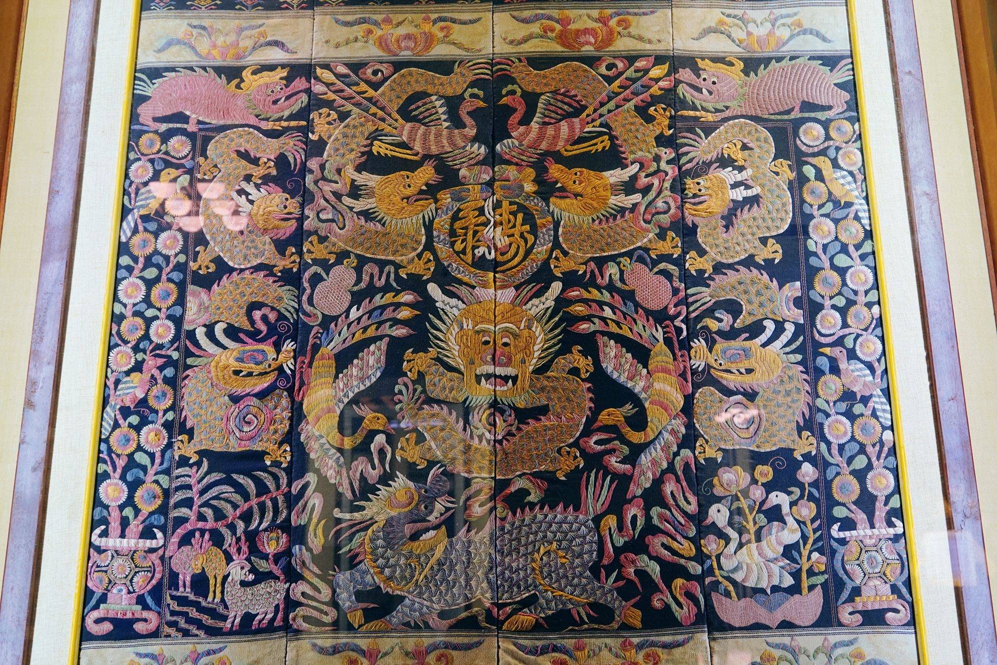 如今龙被制作技艺已经失传,槟榔谷内展示的十几幅真品非常罕见,它们色彩和谐,做工精美,带着华丽又威严的气息。