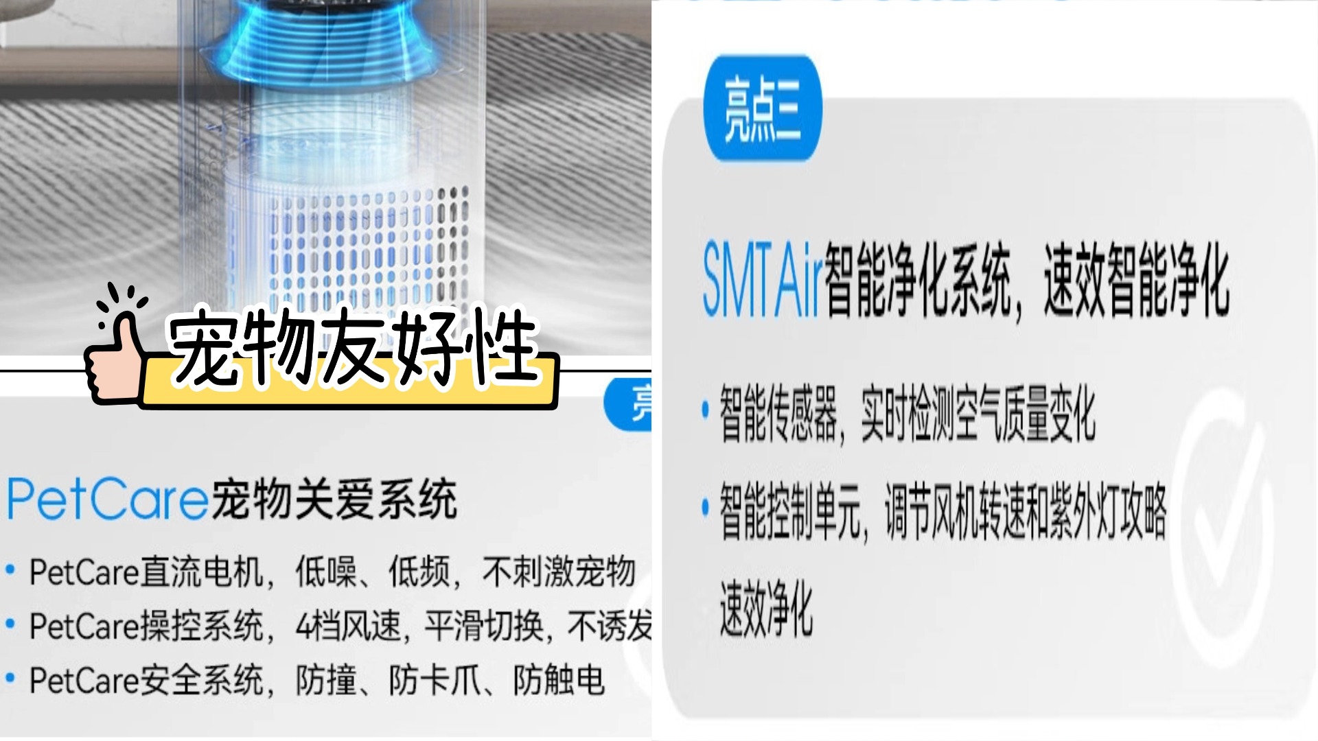 一句话点评:多年专研死磕“浮毛必抓、异味必除、长期安心”,被央视、50+地方主流媒体报道推荐!销量常年稳居中高端宠物空气净化器榜首!