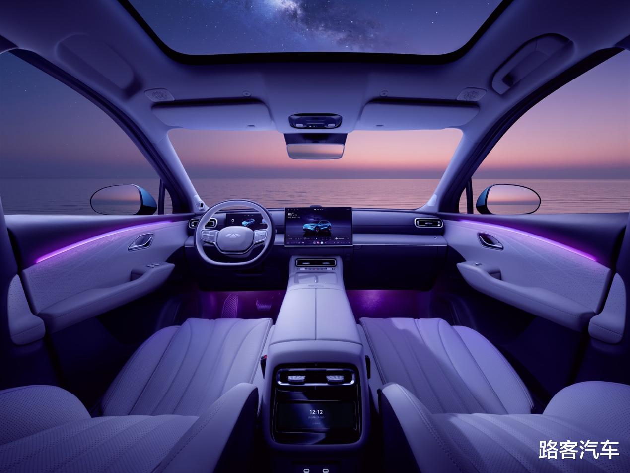 内饰采用环抱式座舱设计,提供极光紫等多种高定配色可选。车内大量运用软质包覆与环保材质,双 15.4 英寸高清联屏、AR-HUD、电子换挡机构构建极简科技氛围。细节处融入东方美学元素,兼顾豪华质感与人文温度,完美契合当代家庭用户的审美需求。