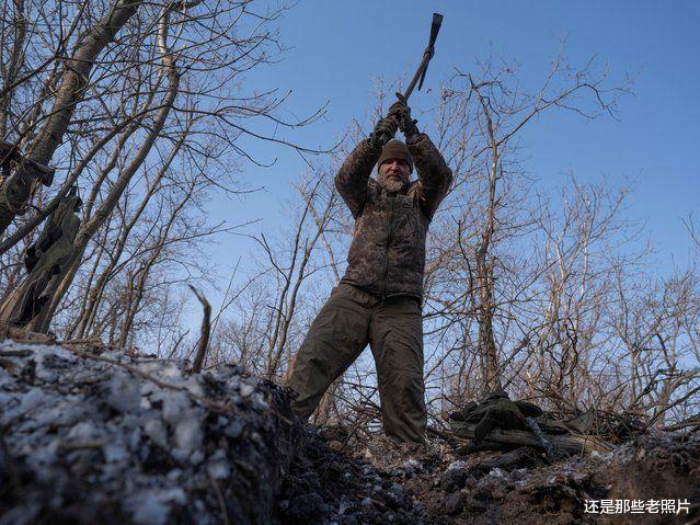 2025年2月,乌克兰第93霍洛德尼亚尔独立机械化旅的一名军人在顿涅茨克州克拉马托尔斯克市附近挖掘壕沟,作为新防御工事系统的一部分。(乌克兰武装部队 伊琳娜·雷巴科娃 摄)