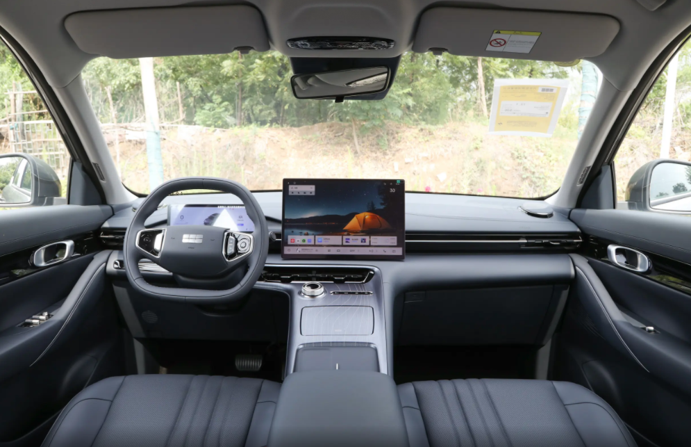 内饰设计上,2026款吉利银河E5彰显除了不俗的层次感,因为在中控台上,它采用了大量的横直线条,而且空调也是贯穿式的设计,并且由于该车纯电车型的身份呢,其在车内也没有保留太多的实体按键,中控台上更为显眼的便是15.4英寸的悬浮式显示屏幕,同时在车机芯片方面,2026款吉利银河E5也是采用了龍鹰一号芯片,车机系统方面也是采用了Flyme Auto车载智能系统,在屏幕的流程程度上,还是不差的。至于智能互联功能方面,2026款吉利银河E5也是相当的丰富,像高德地图导航和车联网以及语音识别控制系统,该车全都配备,满足我们的日常所需也是没啥问题的。