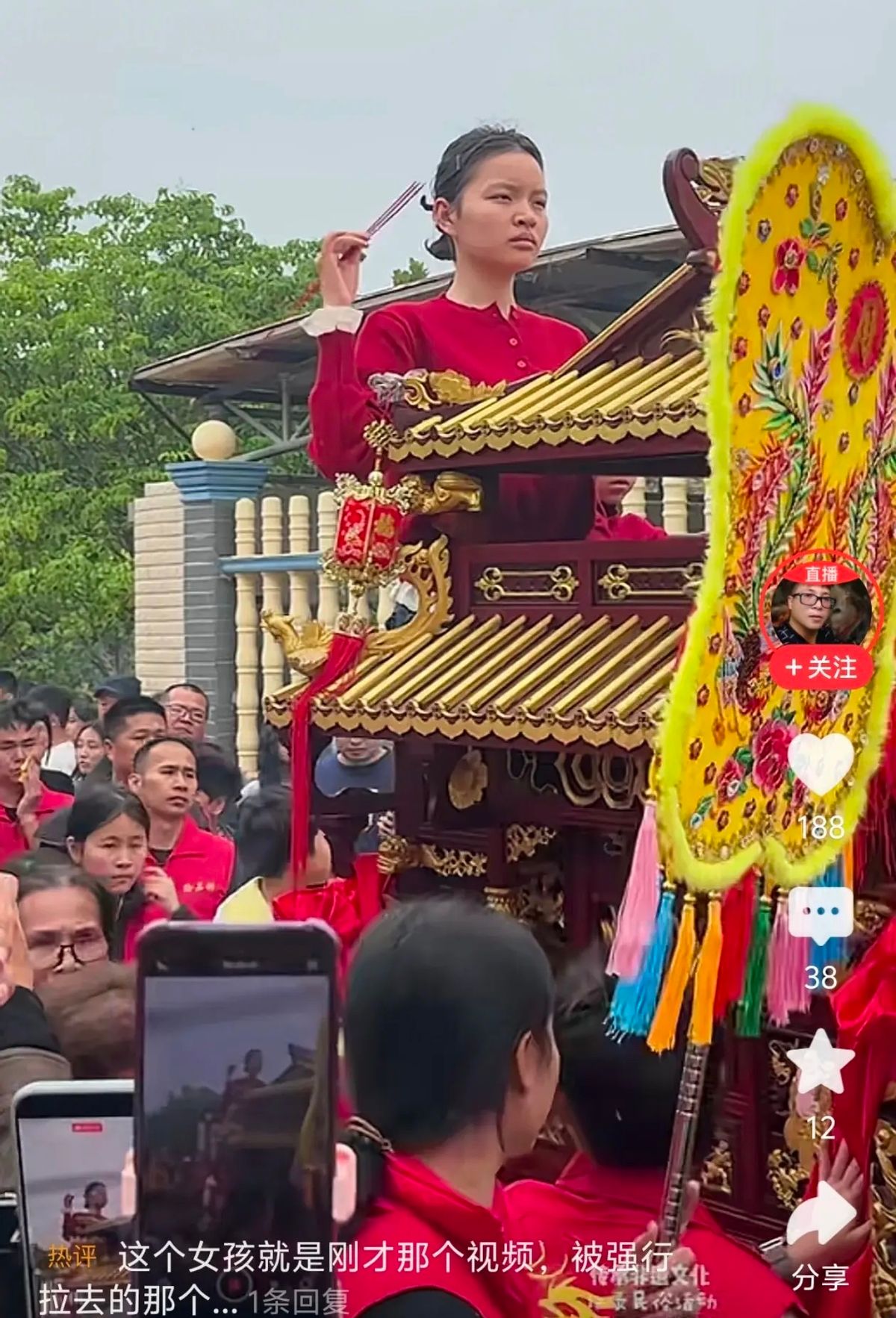 主办方无奈之下回头去请林梓潼救场,过程中不仅拖拽女孩,还动手勒住其父亲的脖子,女孩被半拉半架上轿,全程委屈到攥紧拳头。