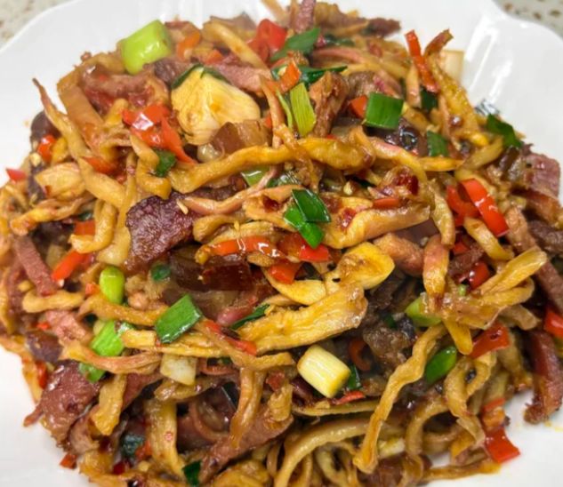 这道菜端上桌,腊肉咸香,萝卜干脆韧,辣椒的辣味浸在油里,光是闻着就让人多添半碗饭。萝卜干吸了腊肉的油,吃起来润而不柴,腊肉有了萝卜干的中和,也不再腻口。在湖南人家里,这道菜往往是最后上桌的,但总是最先见底。剩下的油汤也不浪费,拌进米饭里,几口就能扒拉干净。日子就是这样,不需要什么山珍海味,一块腊肉,一把萝卜干,就足够踏实了。