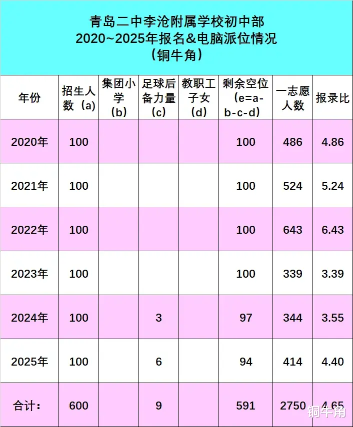 2026年该校将迎来自己的第一届小学毕业生,4个班,大约180人。而该校初中部2020~2025年每年的招生计划只有2个班,100人。所以,2026年该校初中部招生方式大概率要发生很大的改变——只招收小学部直升学生,不再对外招生。所以,那些对青岛二中附属李沧学校一直念念不忘的,要注意了。