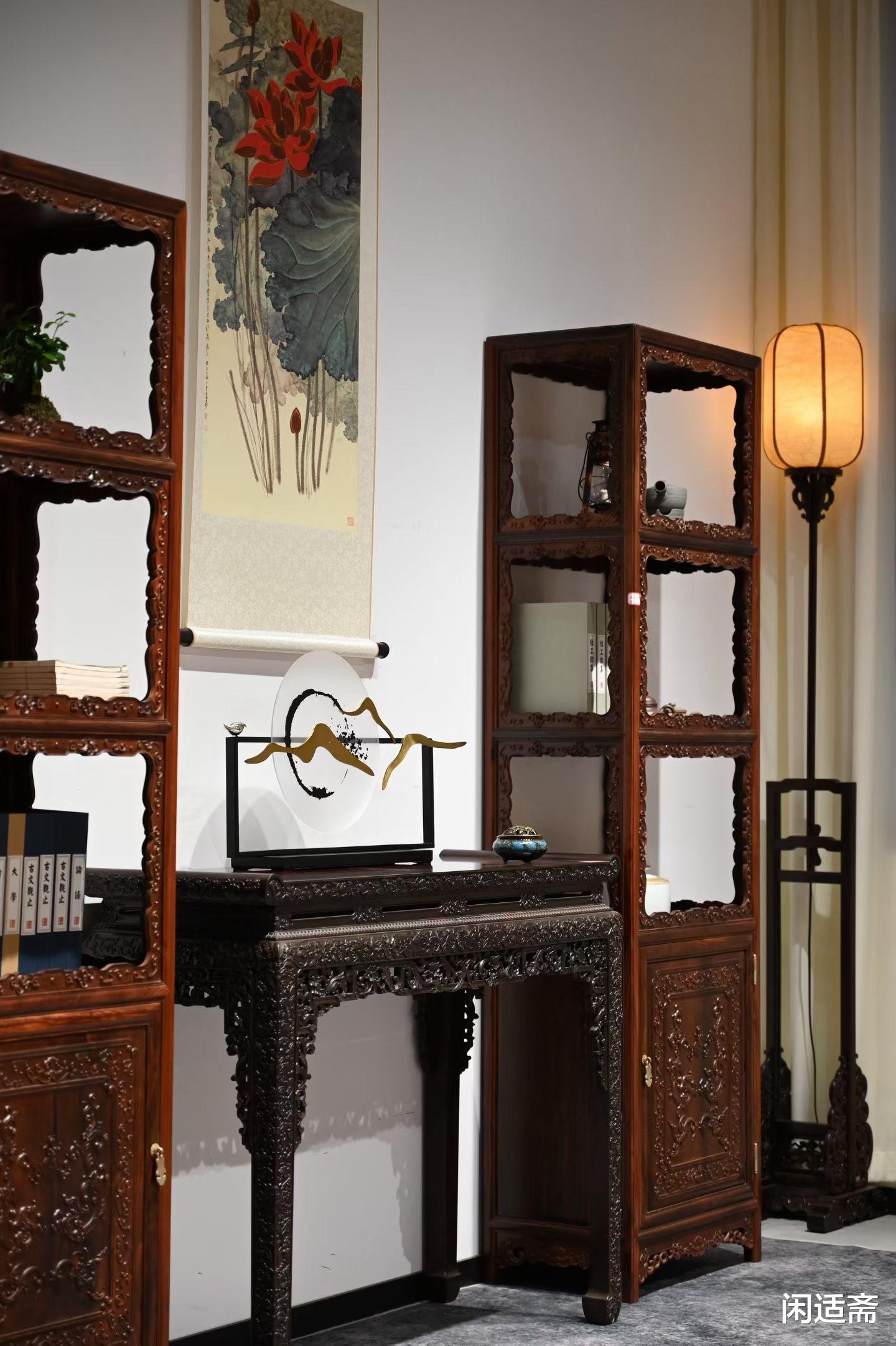 这对博古书架,气质端庄雅致,兼具古典韵味与实用价值,置于书房,可陈列古籍、文玩,陪伴文人读书静思,彰显书房的文化底蕴;放于茶室,可摆放茶具、古玩,搭配茶香,营造静谧雅致的品茶氛围;置于客厅,可作为陈设雅器,陈列藏品、摆件,彰显主人的高雅品味与收藏情怀,既能点缀空间格调,又能满足收纳陈设需求,是一件藏用皆宜、兼具艺术价值与实用价值的高端明清家具典范。