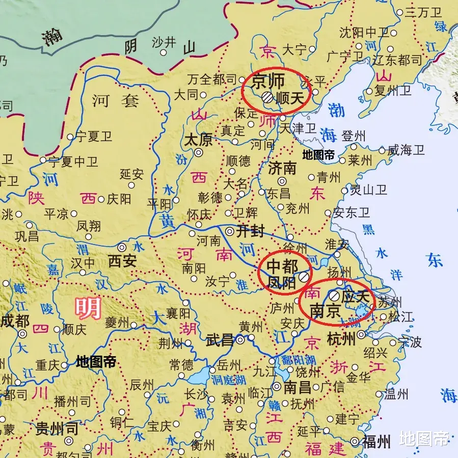 明朝从南往北打跑蒙古人,朱元璋定都南京无可厚非。朱元璋之子燕王朱棣,在靖难之役后迁都北京,也是顺势而为,建都北京。