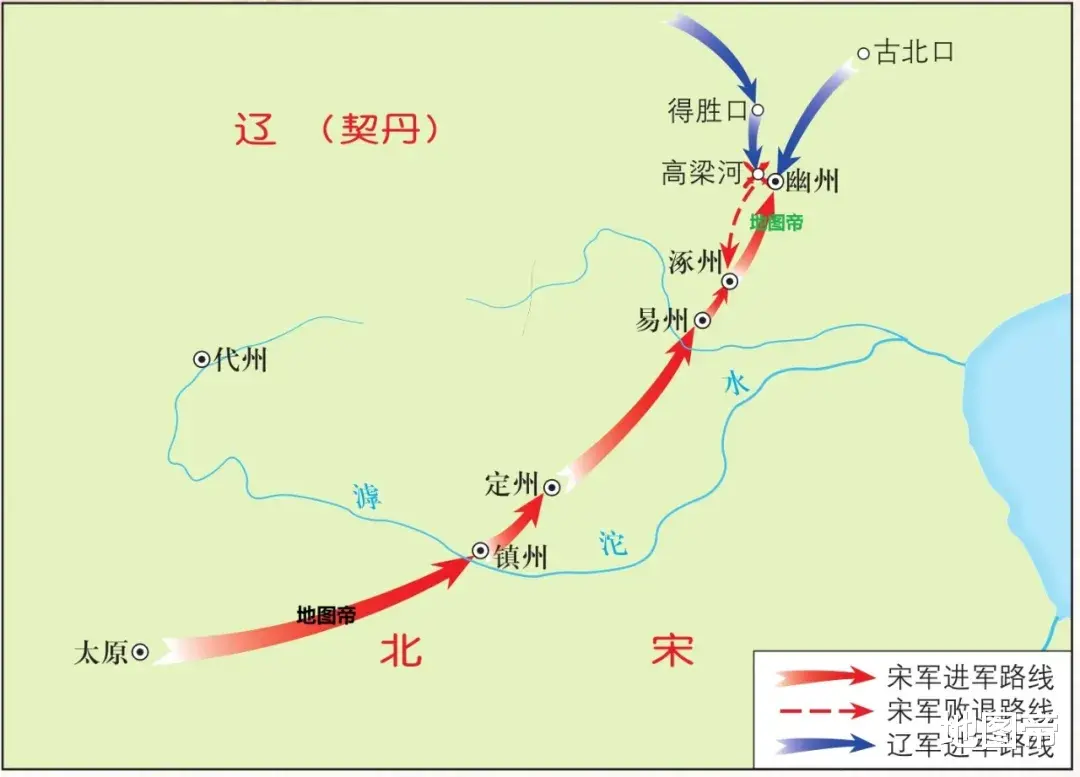 979年(北宋太宗太平兴国四年,北汉广运六年)五月,赵光义御驾亲征,集结三十万大军,由太原出兵,北征燕云。七月,高梁河之战,宋军大败,赵光义屁股中箭,趴着驴车仓皇逃窜。