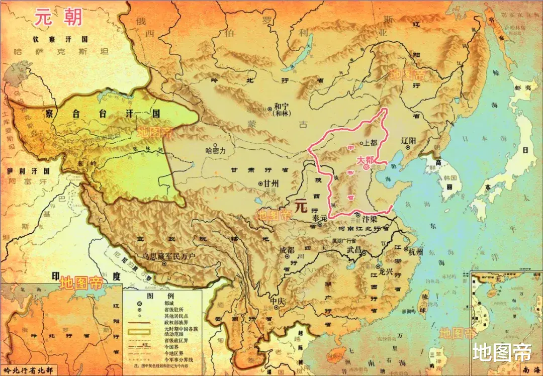 中书省以北京为中心,把燕山山脉、太行山脉、山东丘陵、华北平原放在一起,跨越汉朝的幽州、并州、冀州、青州,蒙古战马纵横驰骋。