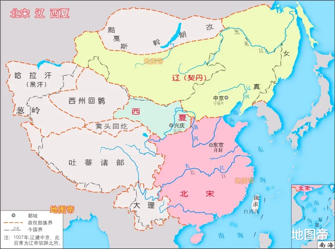 北宋辽西夏时期,关中在北宋手上,但地理上不在核心位置。从宋人的视角看,若定都关中,前提一是击败辽,收回幽云十六州;二是灭掉西夏,收复河套地区。