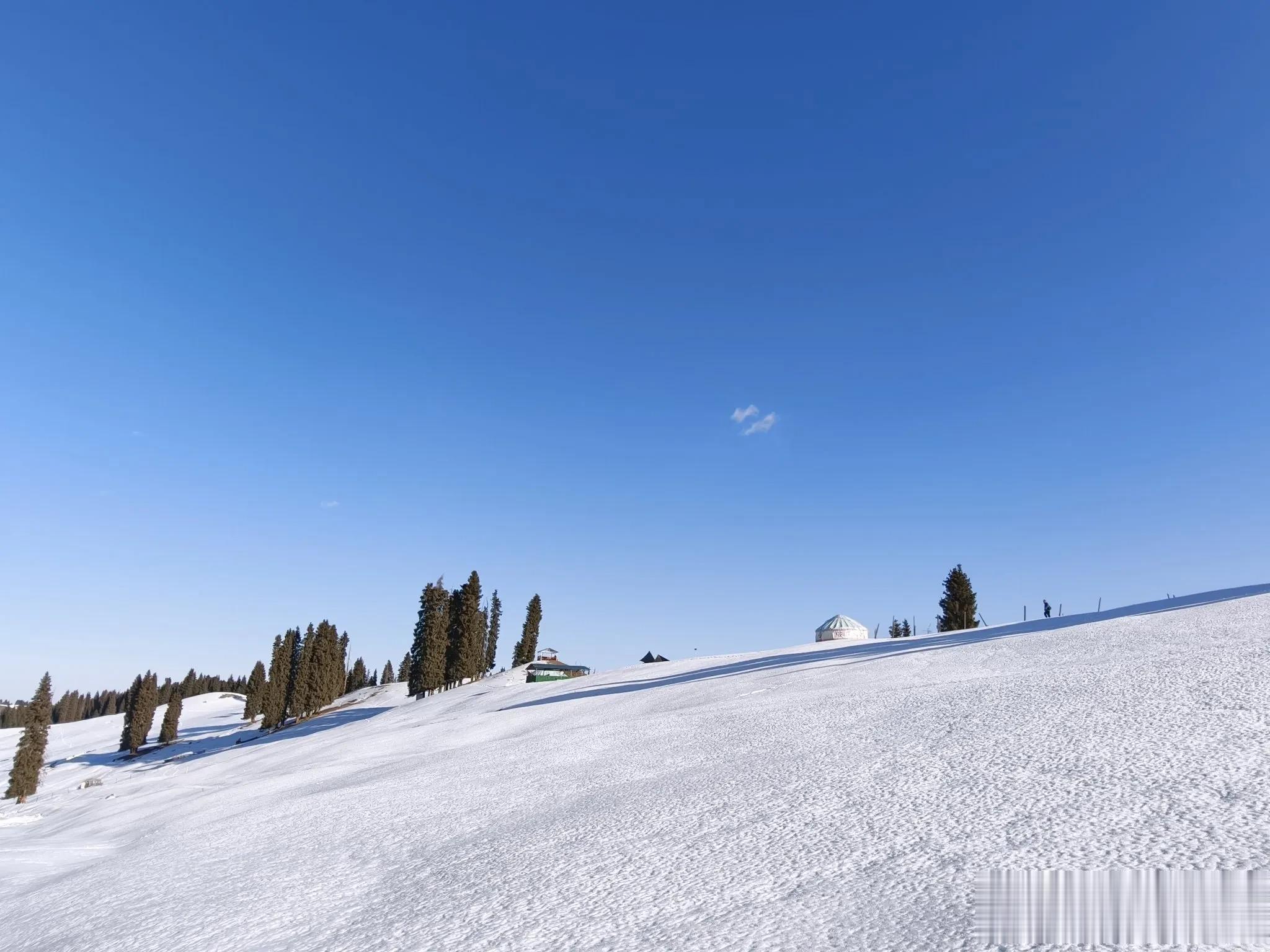 沿着车辙一直前进。被白雪包裹着的山丘干净而完整,在阳光的照射下如丝滑的绸缎,又如波浪起伏的海面。行进其中的小伙伴像一群随波逐流、畅游大海的小鱼,自由自在,欢欣雀跃,不时地放开嗓子吆喝一声,告诉群山和雪原,我们来了!
