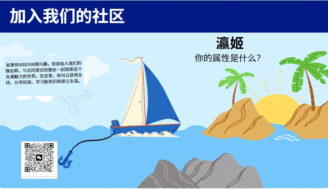 如果你对BDSM感兴趣,欢迎加入我们的微信群,与志同道合的朋友一起探索这个充满魅力的世界。在这里,你可以获得支持、分享经验、学习新知识和建立友谊。