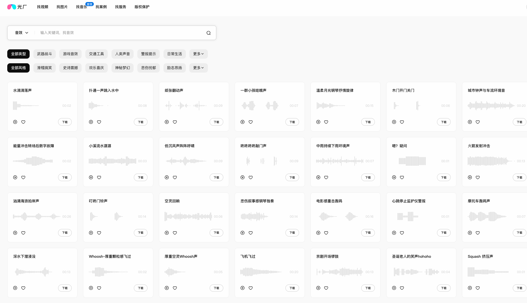 对于广告音效需求,光厂的核心优势在于强大的本土化适配与极致的下载体验,最重要的是“免费!!!”。其素材库紧跟国内热点和文化习惯,能轻松找到贴合春节、中秋等中式营销场景的特色音效。