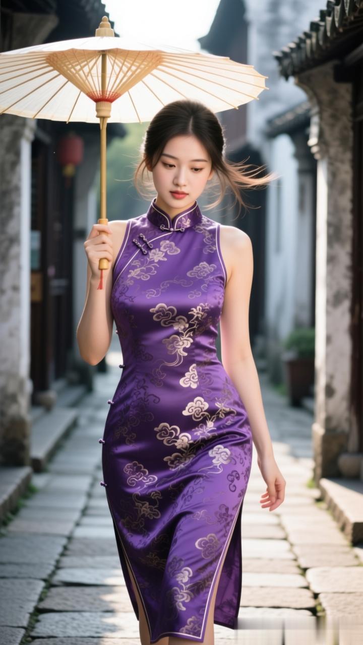 她们走在青石板路上,步履轻灵如柳絮飘落。那不是刻意的优雅,是浸润在水乡里千年的风骨,是烟雨晕染的底色。
