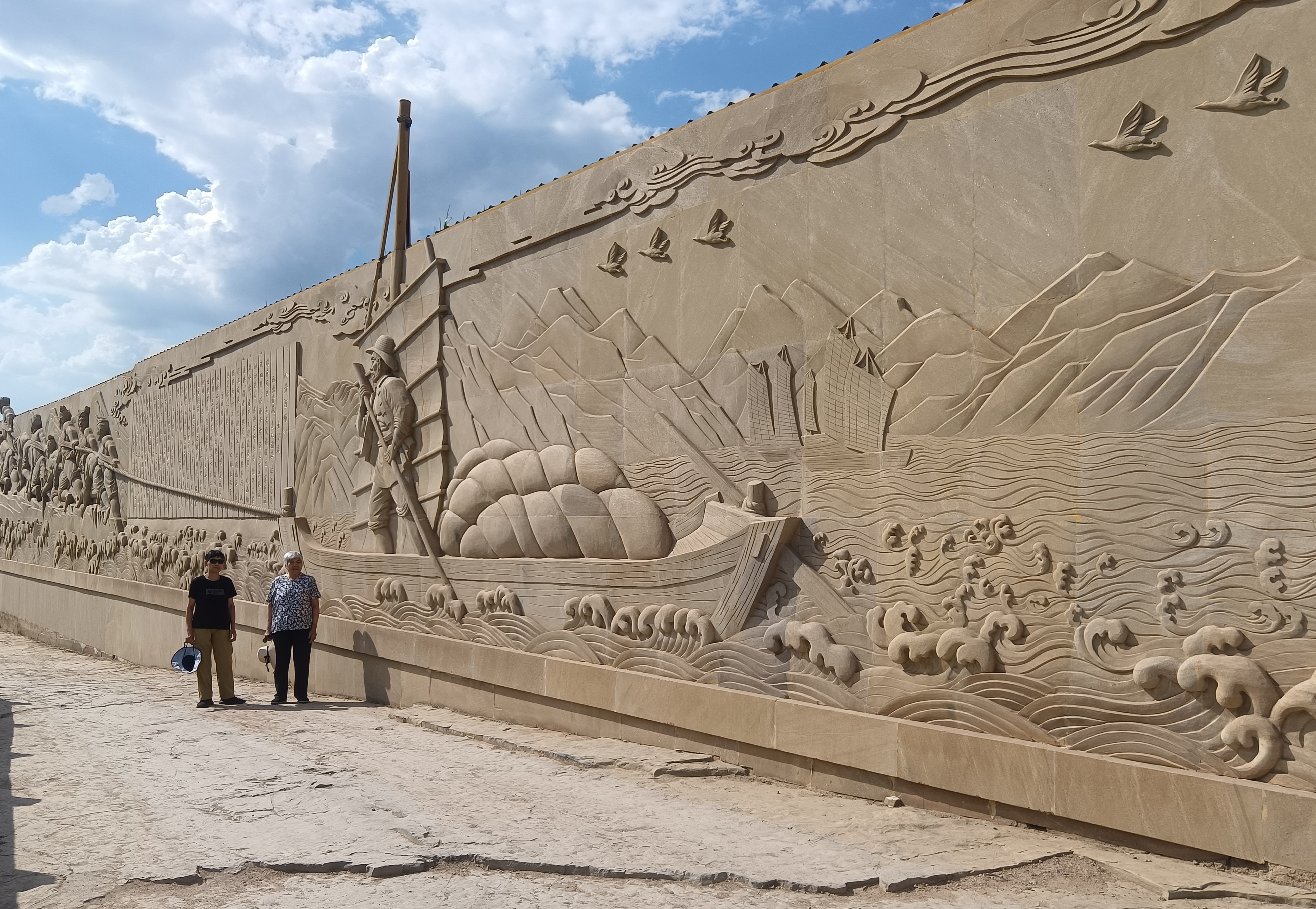 库布齐沙漠神泉景区60岁免收门票费,乘坐缆车横渡黄河,下面湍急的黄河水,黄如泥浆,从北向南奔腾不息十分壮观,大约15分钟到达对岸,刚才上缆车前还是绿草茵茵的绿洲,下了缆车瞬间既是黄沙层层的大漠了,这景色切换的速度之快、幅度之大、程度之深,令人触不及防!紧接着乘坐小火车游览库布齐沙漠,很久才缓过神来。