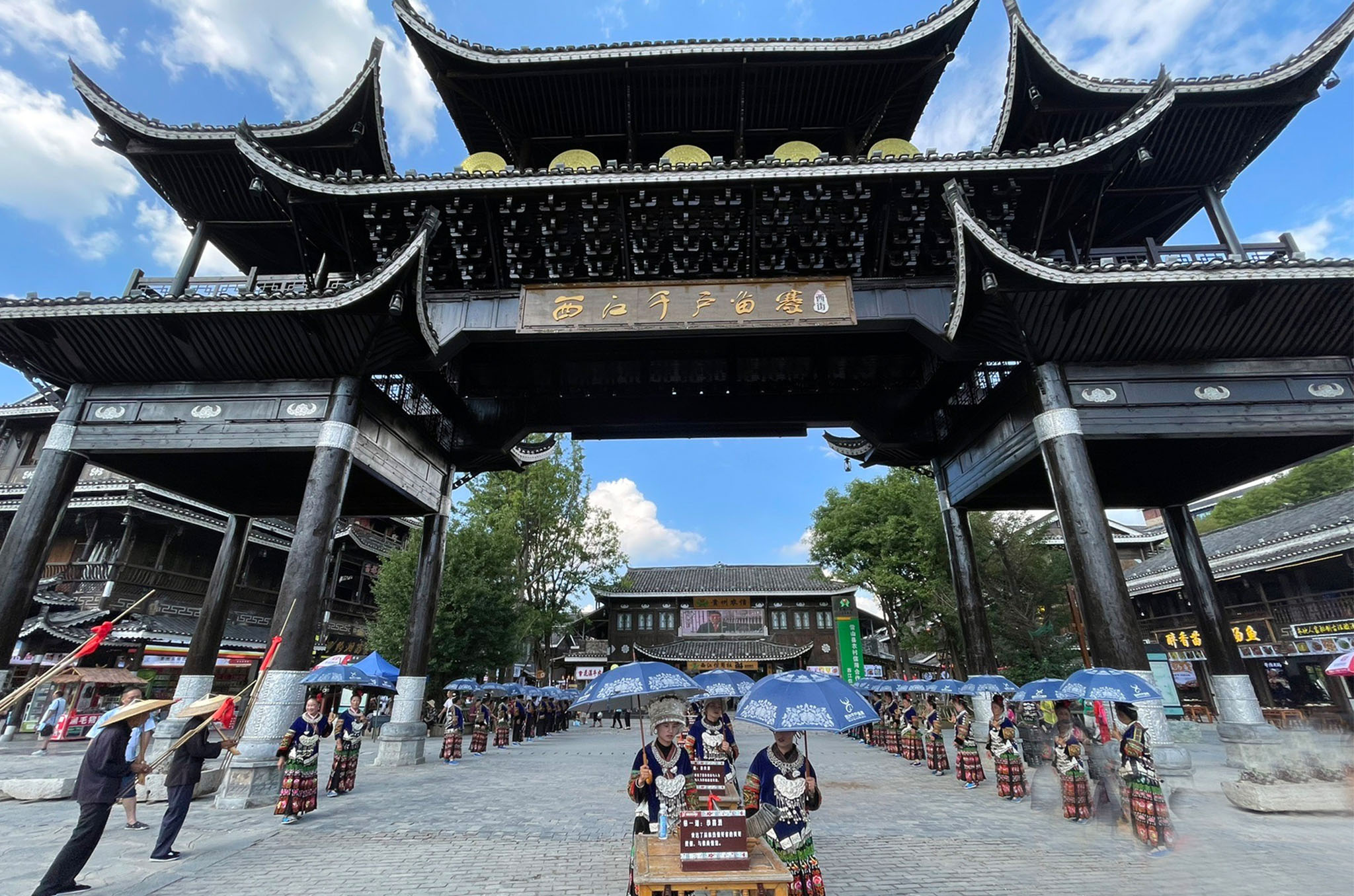 在西江千户苗寨,我还看到了苗族的传统舞蹈。舞蹈队员们身穿传统的苗族服装,手持银铃,脚踩银钹,跳着优美的舞蹈,让人感受到了苗族文化的独特魅力。