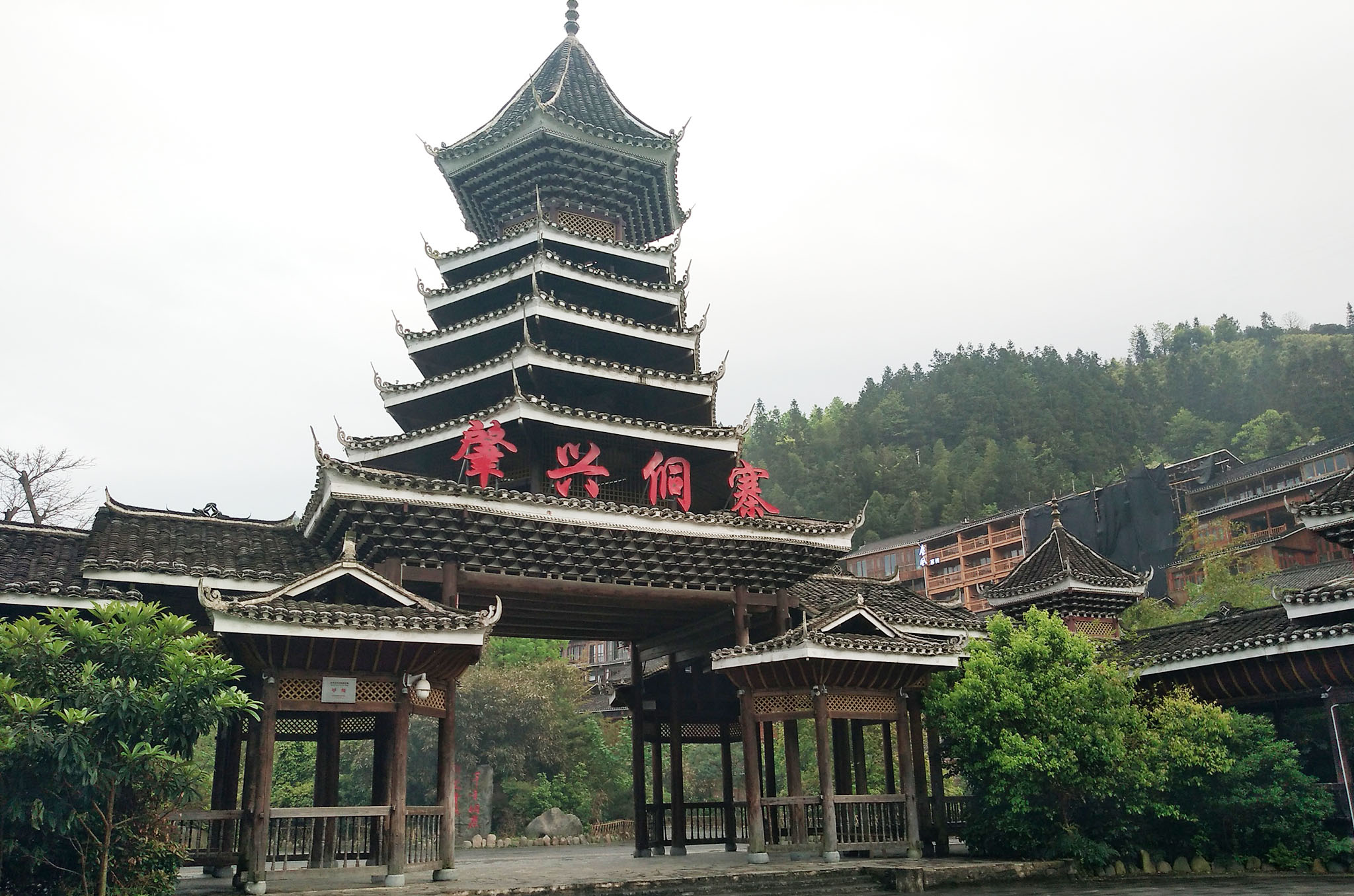 第二站,肇兴侗寨,位于黔东南州的黎平县内。这里四面环山,寨子里有五座高大的鼓楼,鼓楼是侗族村落的标志性建筑之一。在侗族文化中,鼓楼有着非常重要的地位,它不仅是村落的中心,还是侗族文化的重要载体。