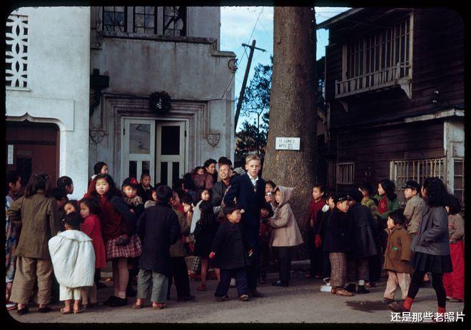 1949年,美国小孩亚瑟和贝蒂在圣彼得教堂前给日本小孩分发圣诞礼物。