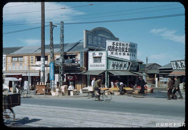 1949年,日本横滨的小市场,商店门头上不少的汉字。