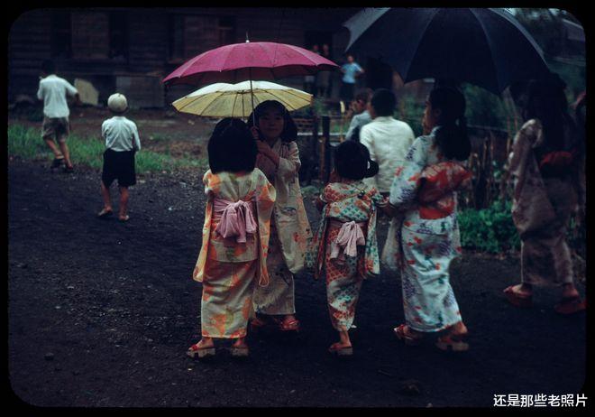 1949年,打着雨伞的日本小孩,穿着传统的和服。