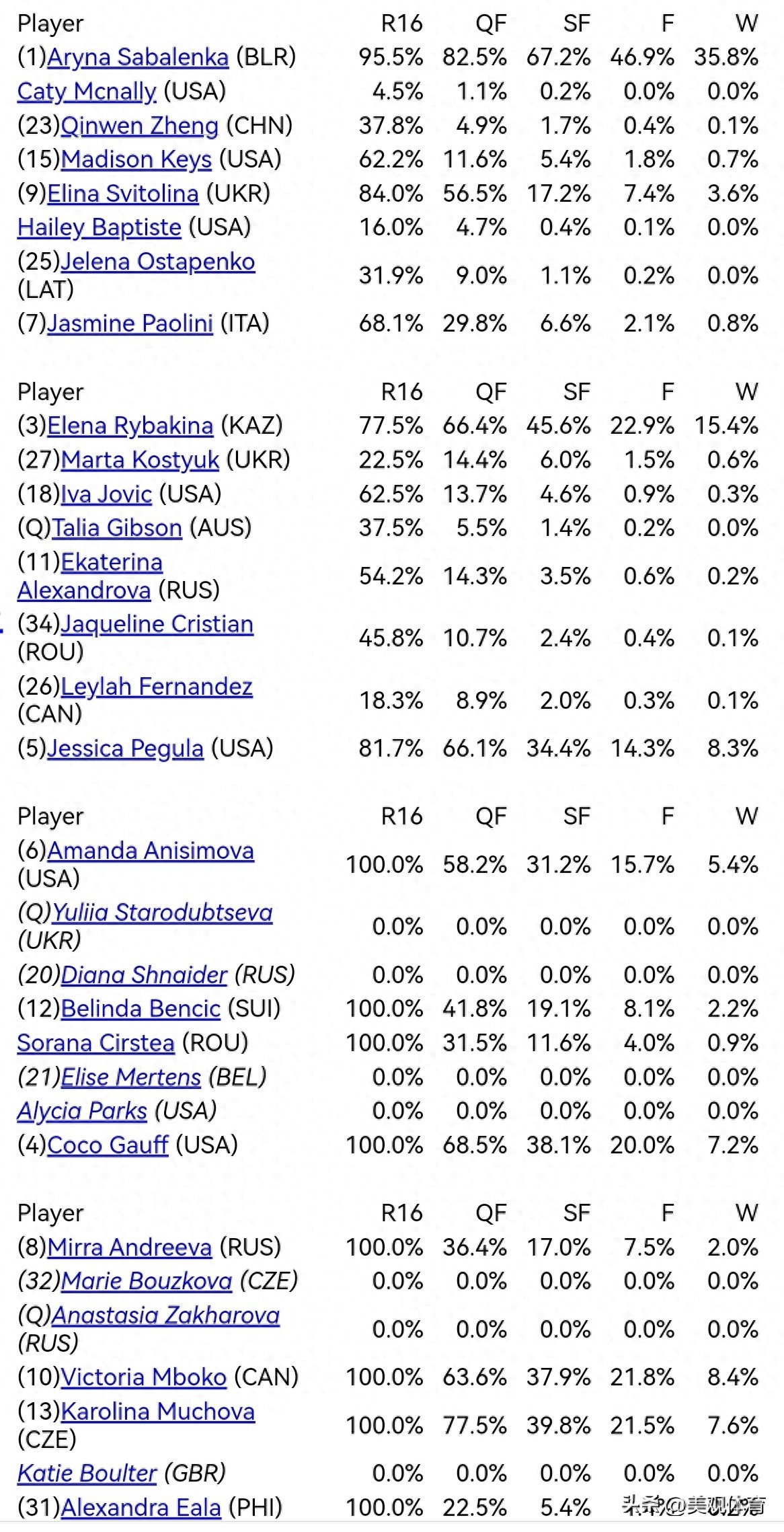 1、阿丽娜·萨巴伦卡 (1) 38.5%