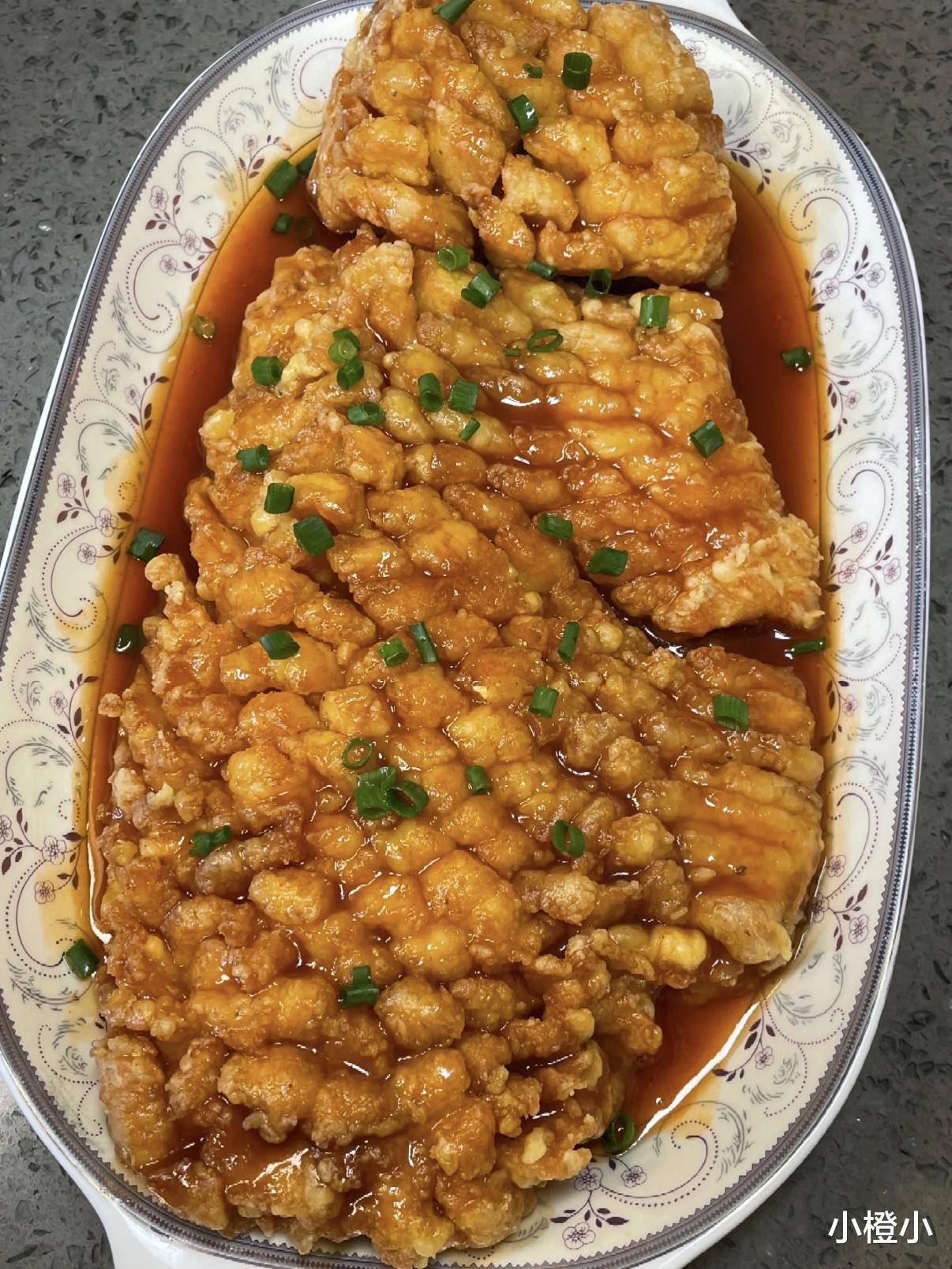 锅留底油,酱汁小火煮至冒泡,像“岩浆”一样咕嘟,把水淀粉再搅一遍(淀粉爱沉底),一圈圈淋进去,酱汁立刻变稠“拉丝”。关火!倒入炸好的鱼,掂锅or大勺子淋,10秒均匀裹满,撒葱花,搞定!趁热夹一块,“咔嚓”外壳碎成渣,里层鱼肉雪白弹牙,酸甜汁顺着指缝往下淌,谁还顾得上说话?