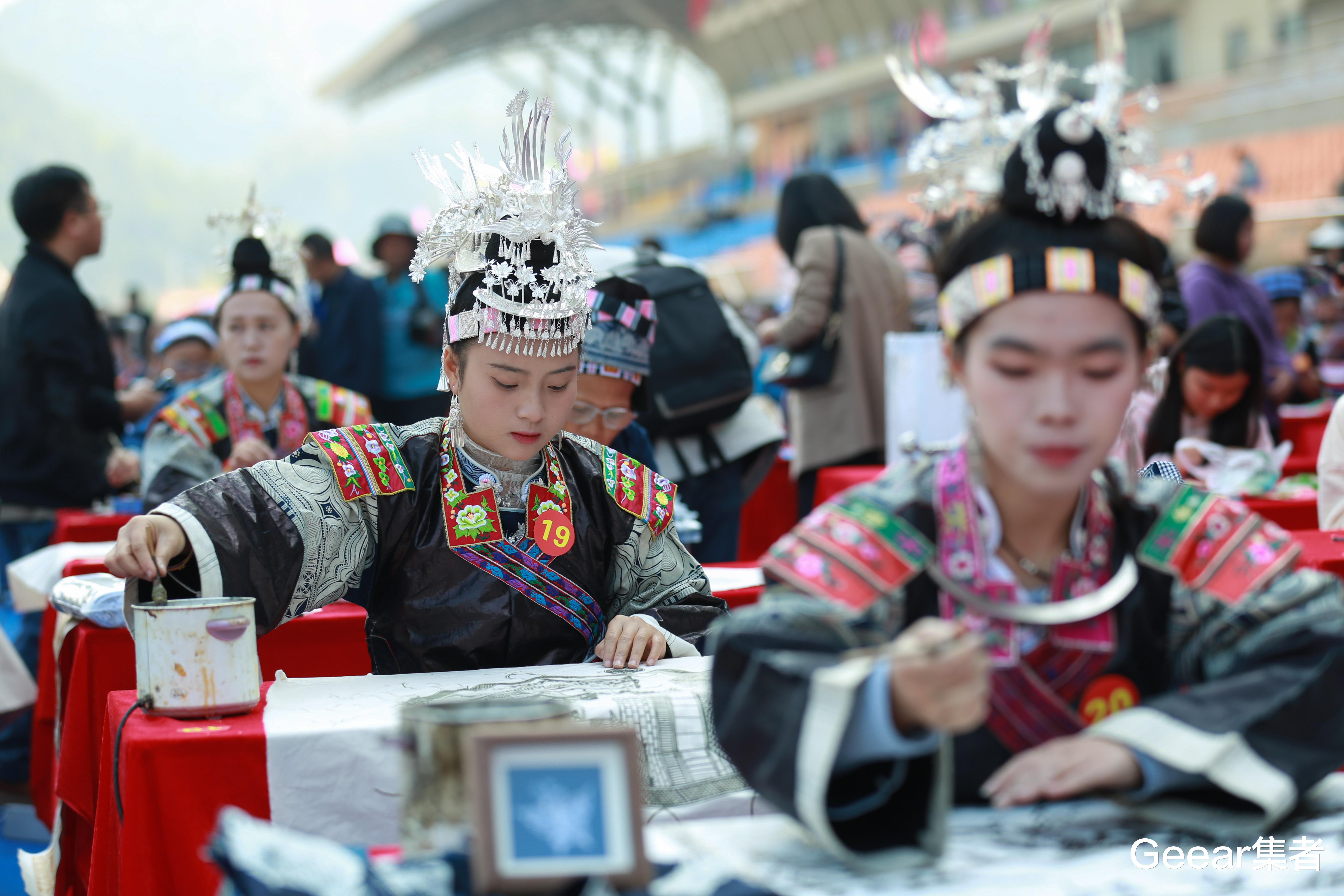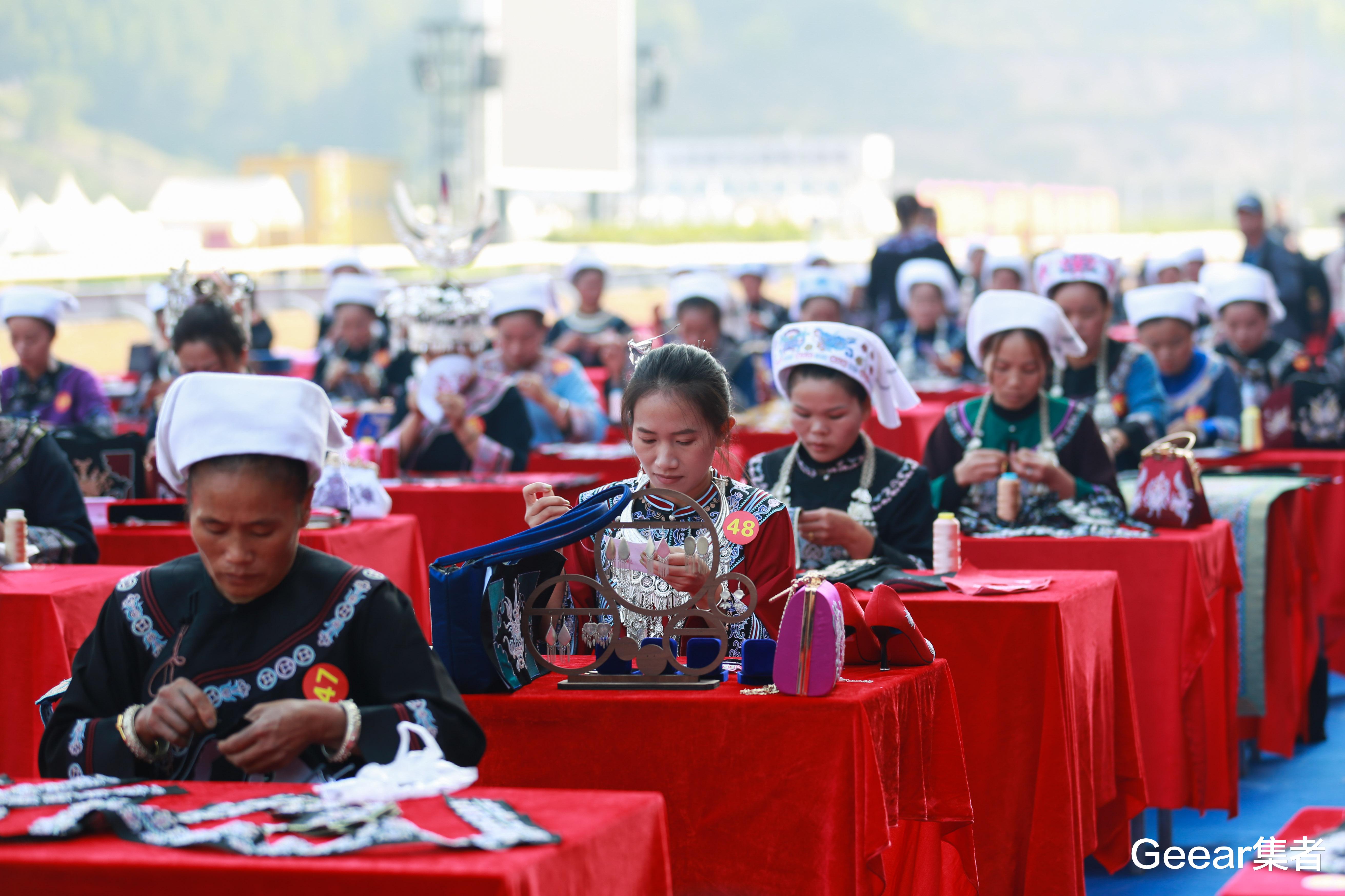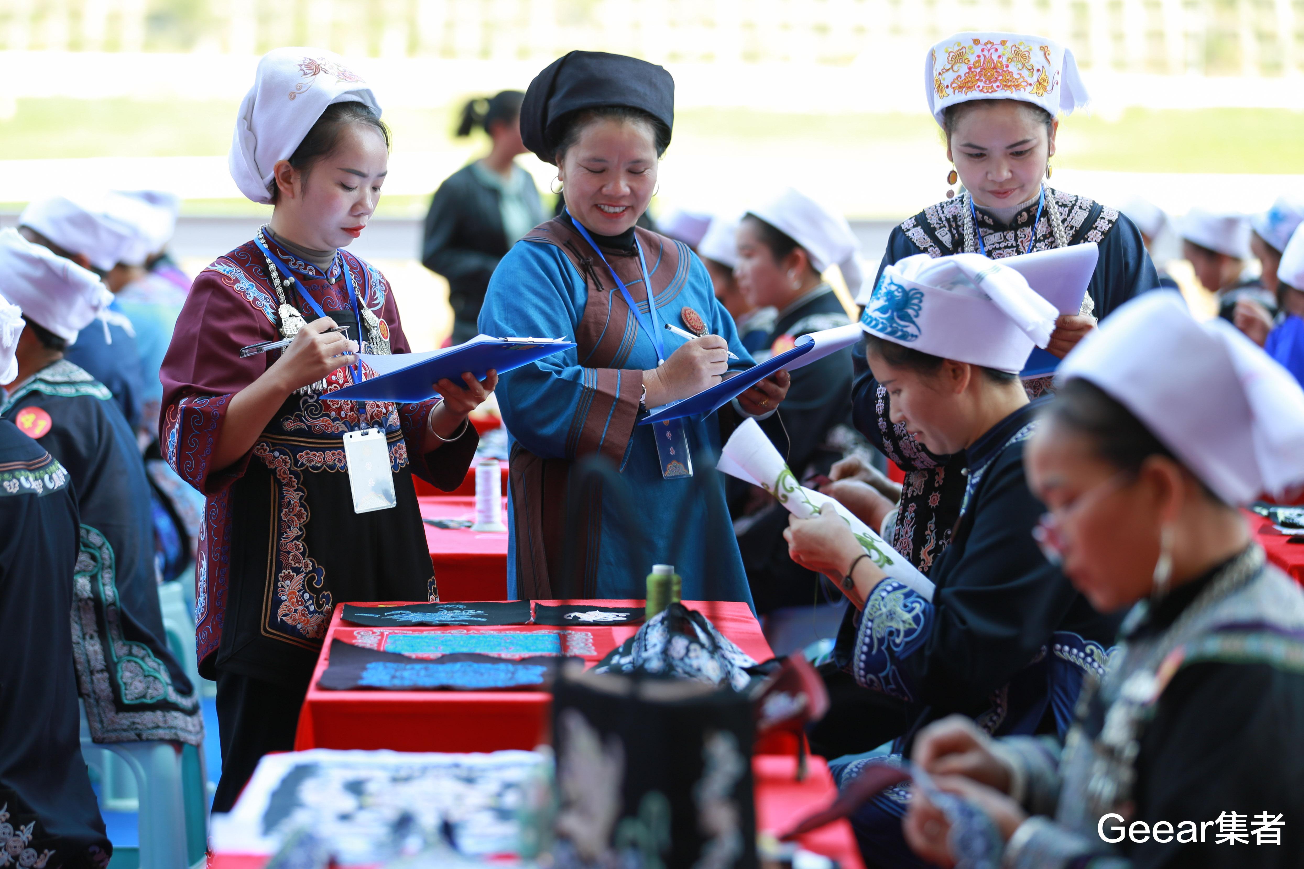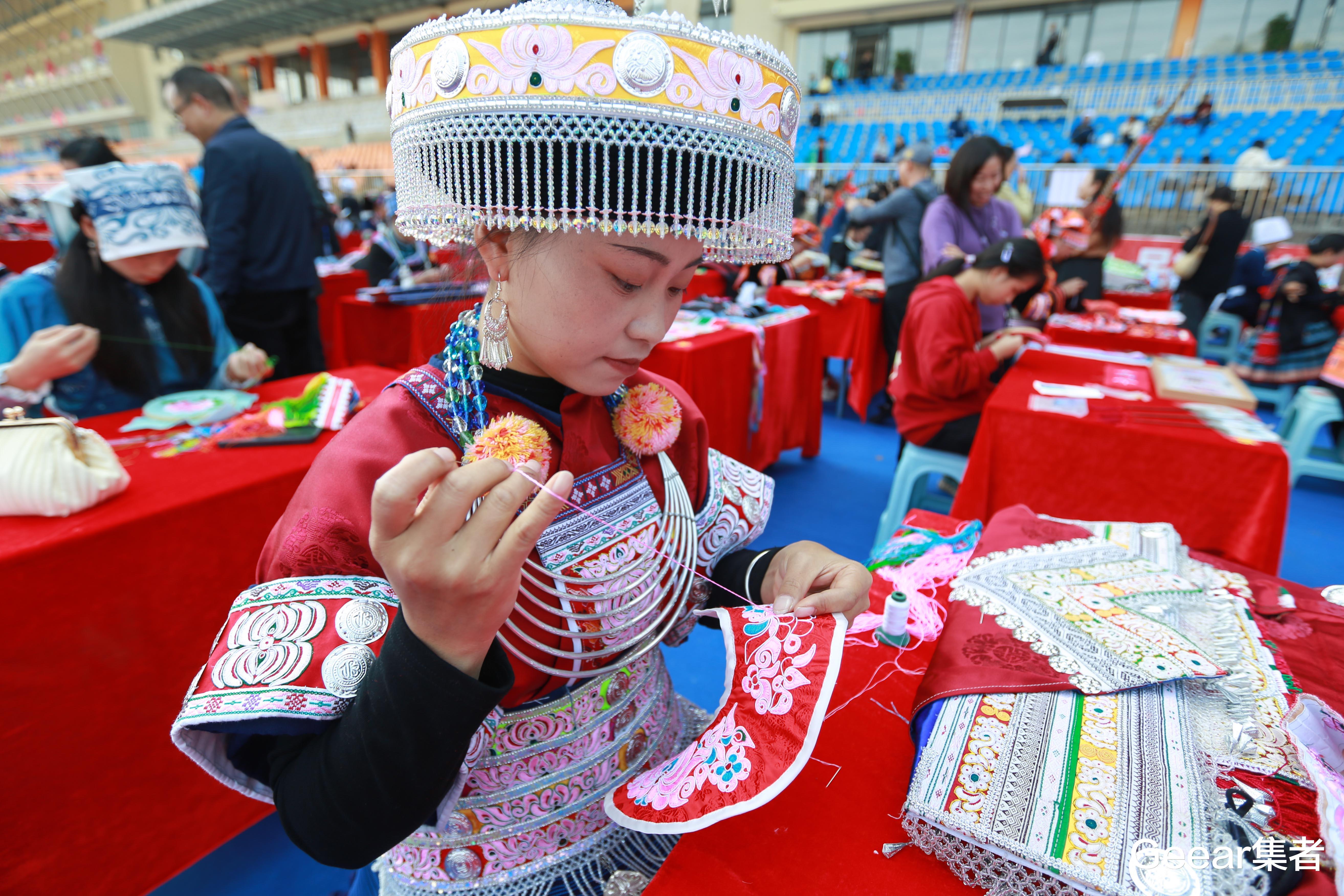 当日,贵州省黔南布依族苗族自治州举办第九届妇女特色手工技能大赛,来自全州各地200余名绣娘齐聚三都水族自治县,参加了水族马尾绣、苗绣及蜡染绘画等比赛,在比赛中相互交流技艺,传承指尖非遗。