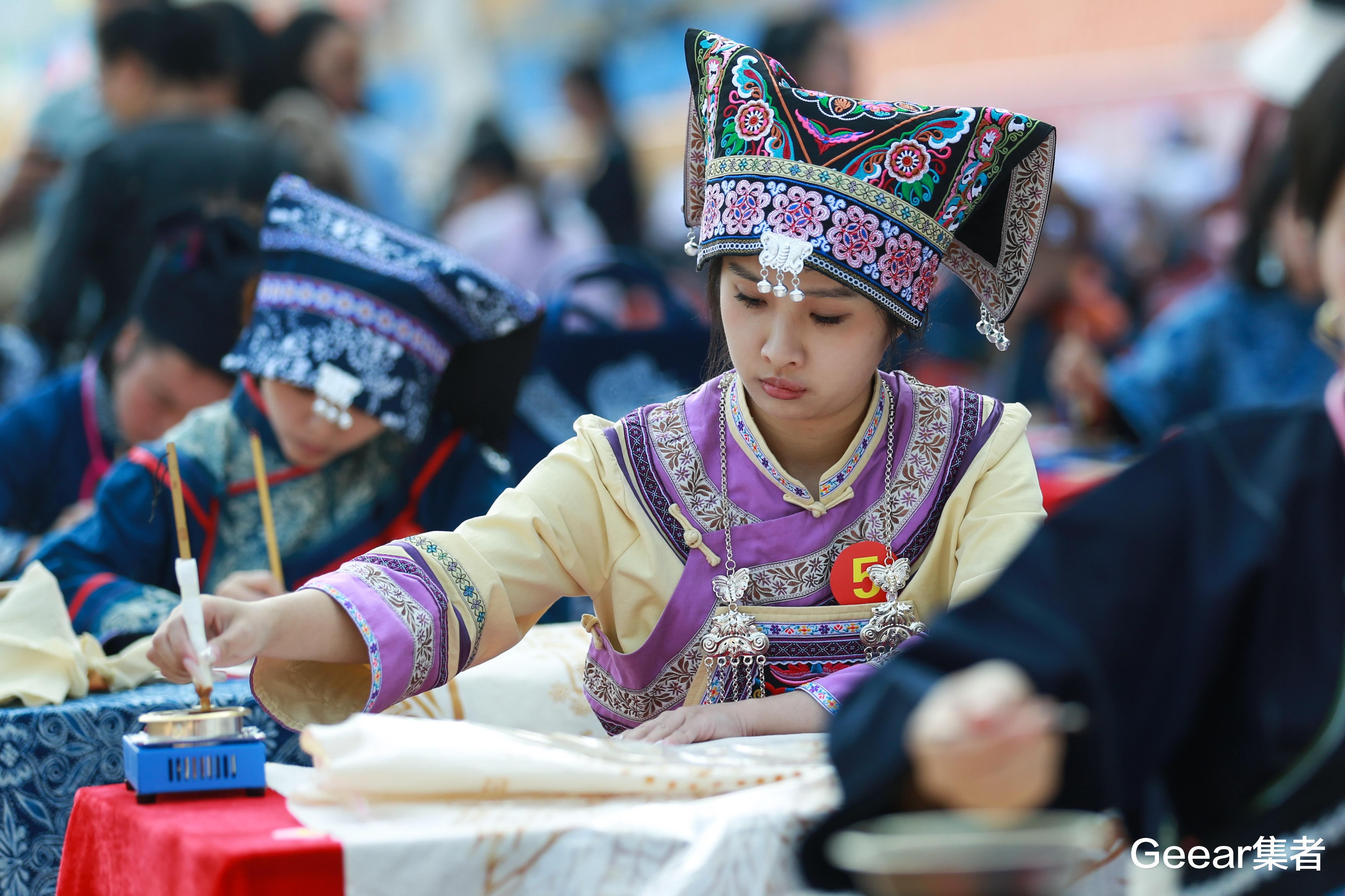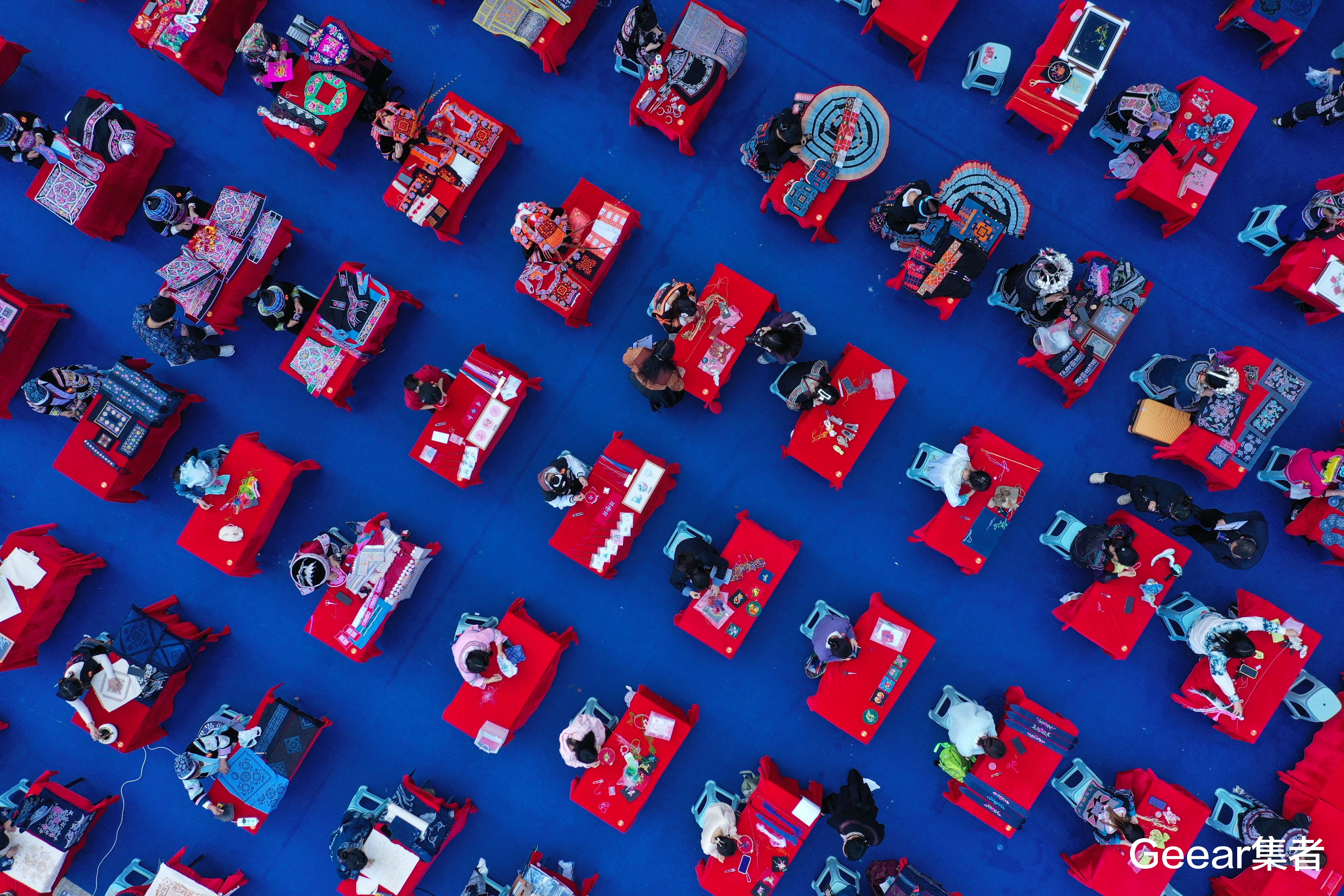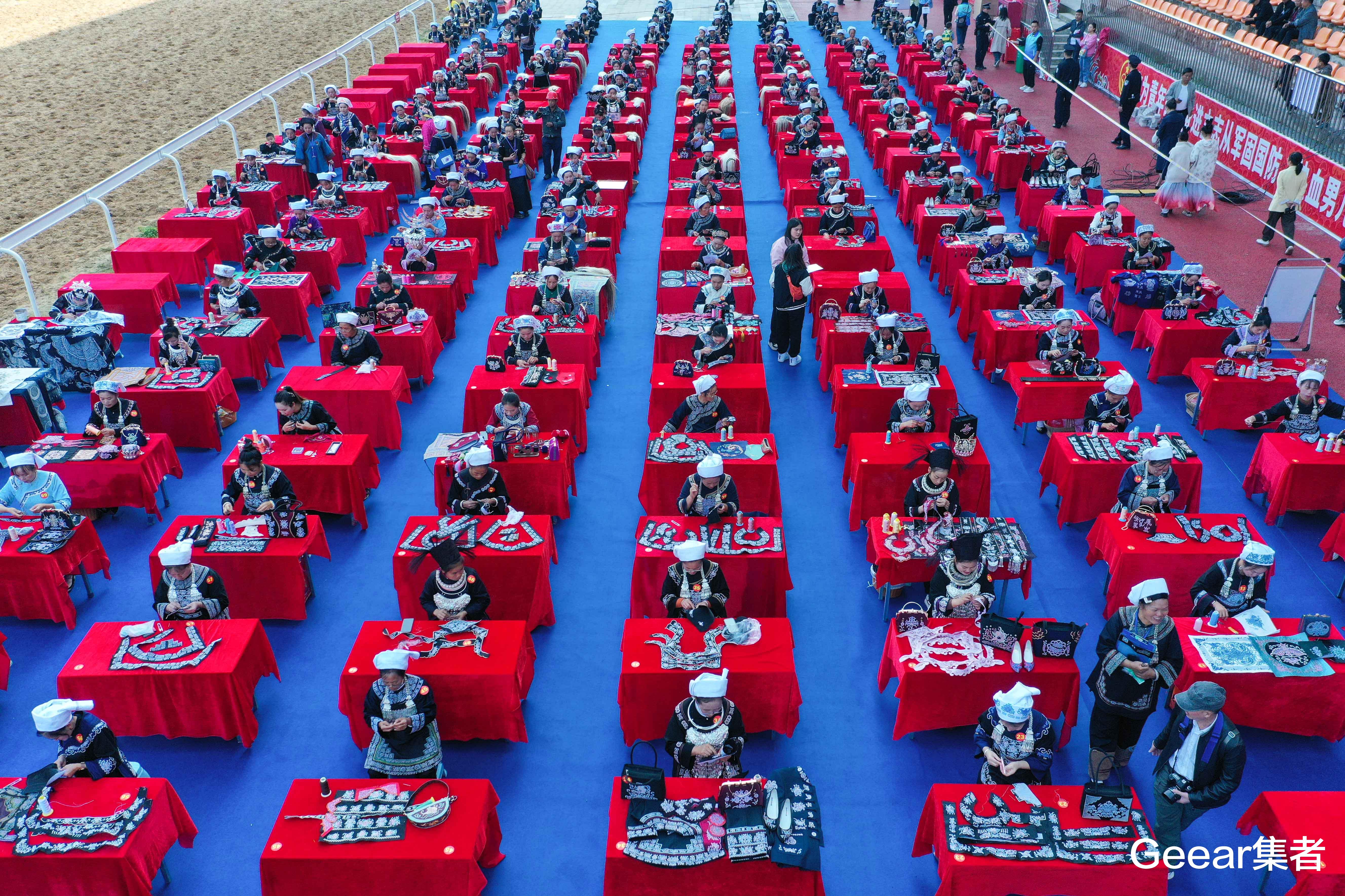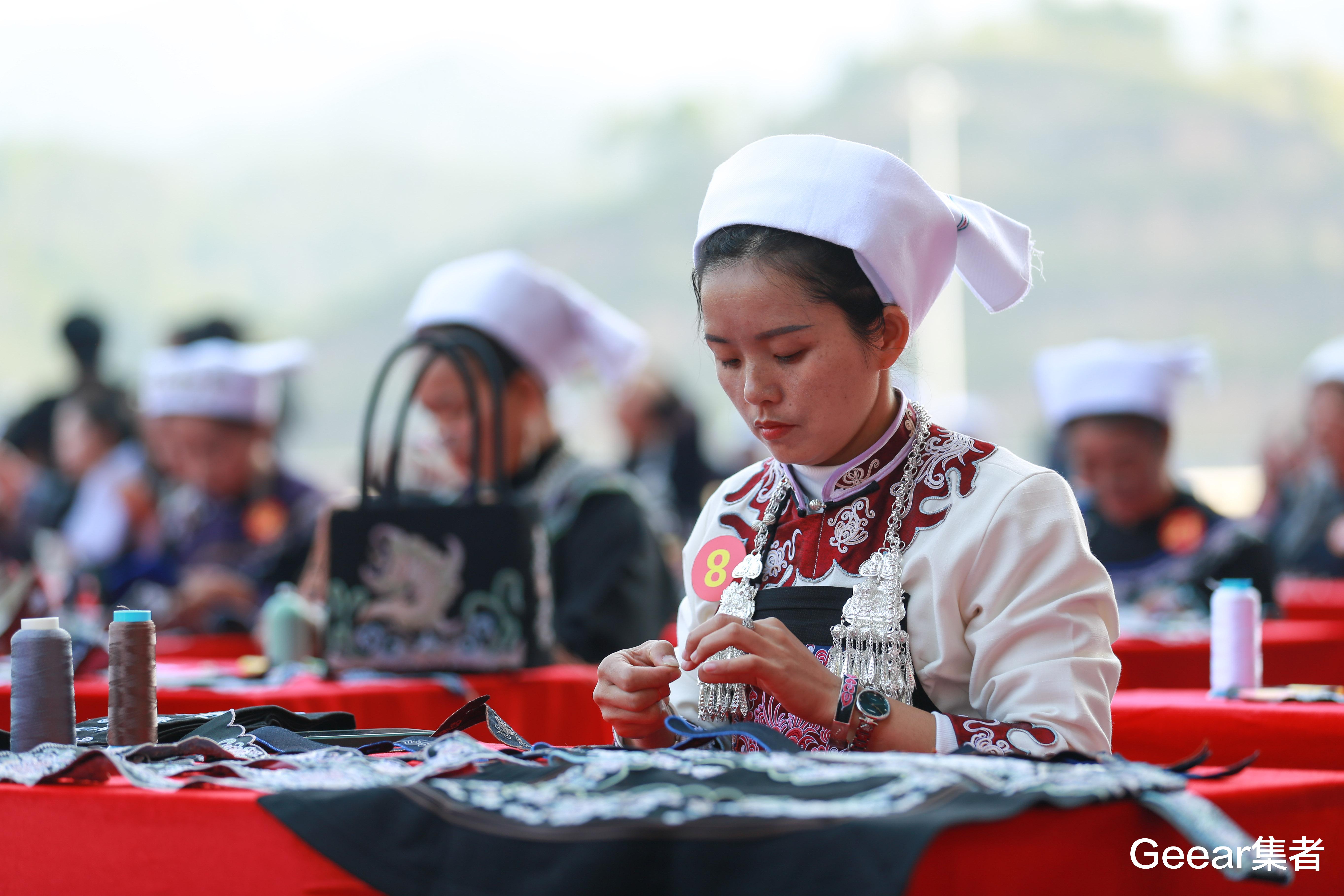 当日,贵州省黔南布依族苗族自治州举办第九届妇女特色手工技能大赛,来自全州各地200余名绣娘齐聚三都水族自治县,参加了水族马尾绣、苗绣及蜡染绘画等比赛,在比赛中相互交流技艺,传承指尖非遗。
