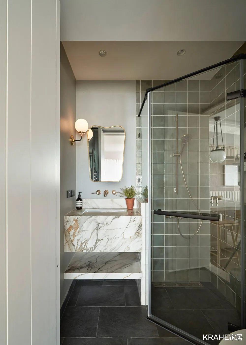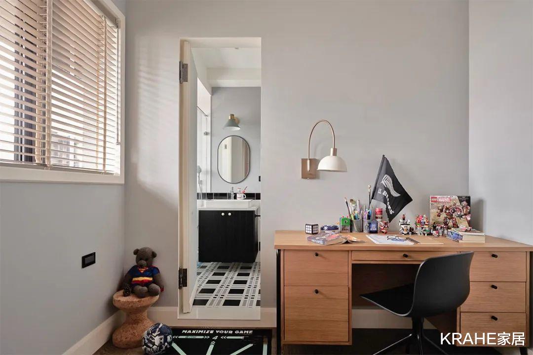 尽管是儿童房,但希望展现出跨越年龄的氛围,浴室铺设经典的地铁砖,墙面采用淡蓝色,展现出有趣但不太可爱的微妙感。