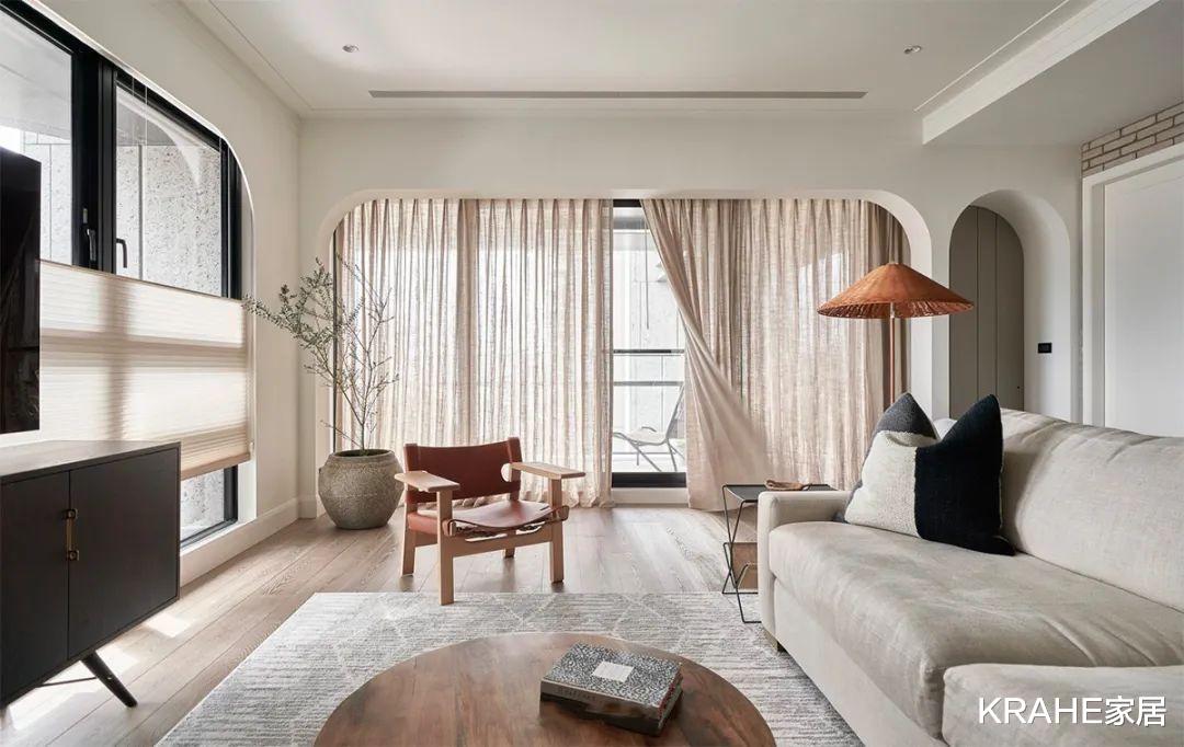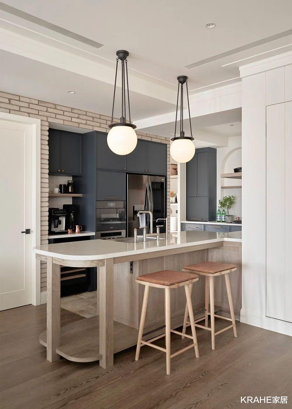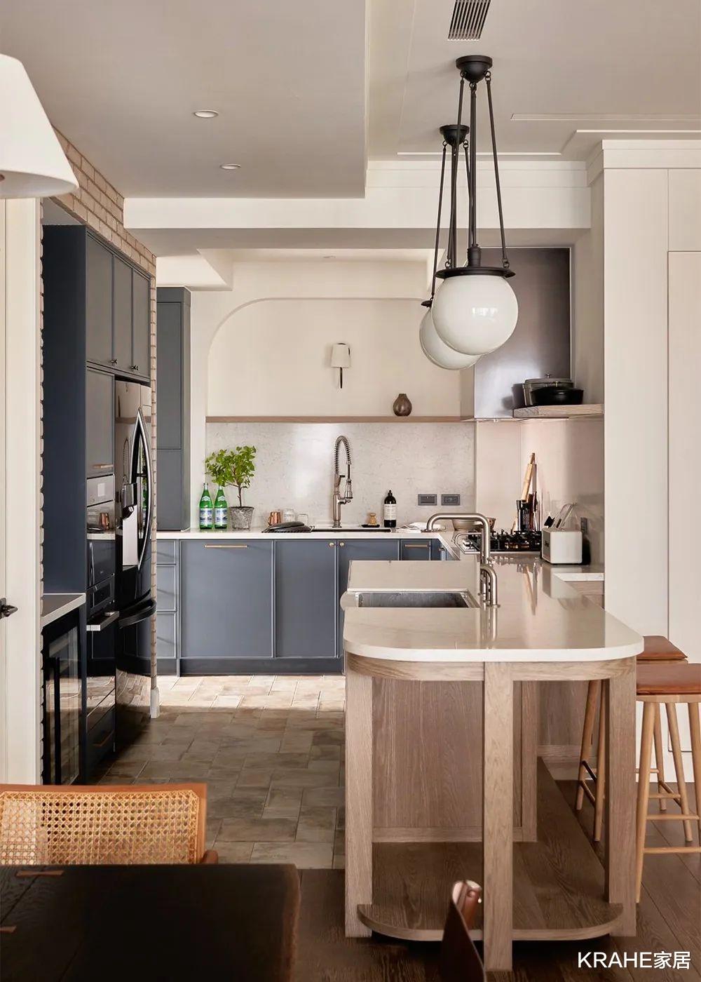 屋主可能更喜爱现代设计。设计师加入圆弧、曲线、质朴色系,展现独特美式风格。